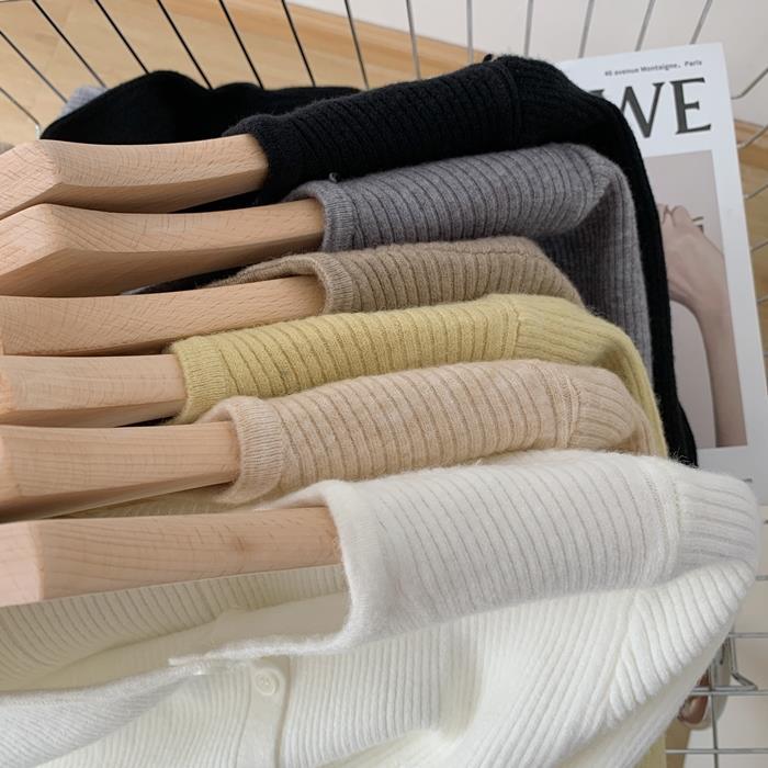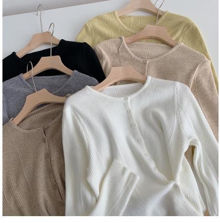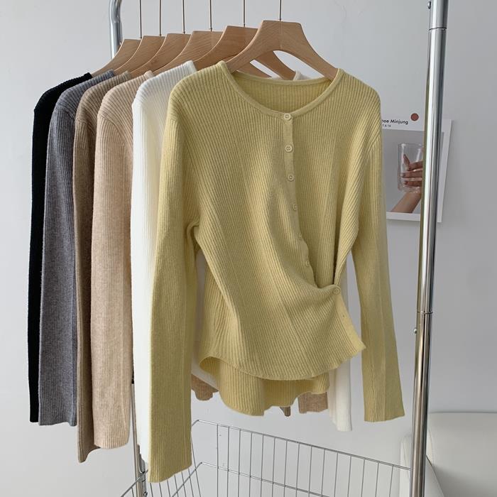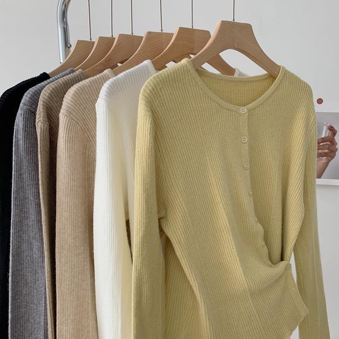 가을과 겨울 새로운 솔리드 컬러 불규칙한 버클 스웨터 여성용 한국식 슬림핏 심플 젠틀 스타일 여성용 니트 가디건 재킷스토어 가기