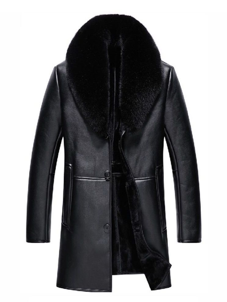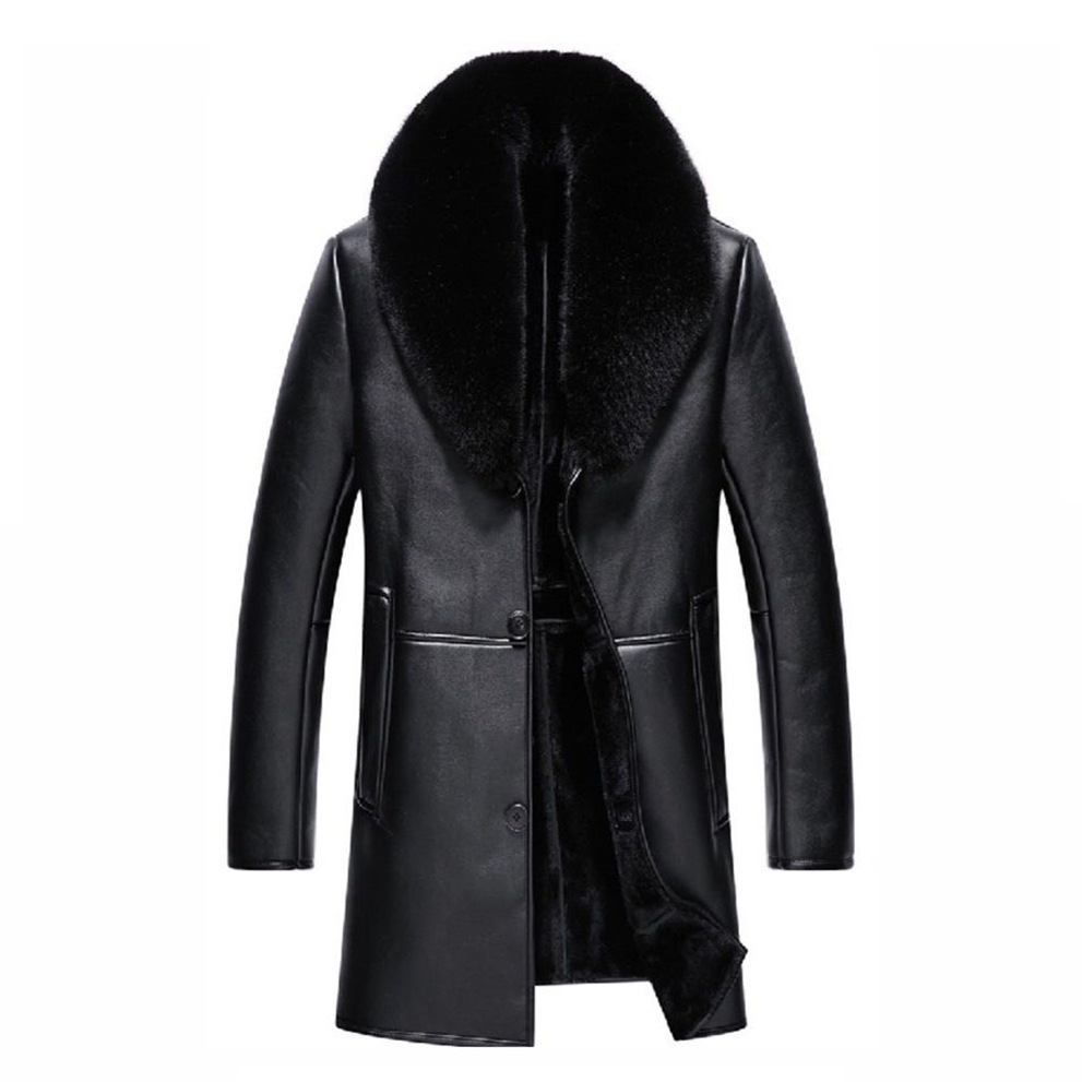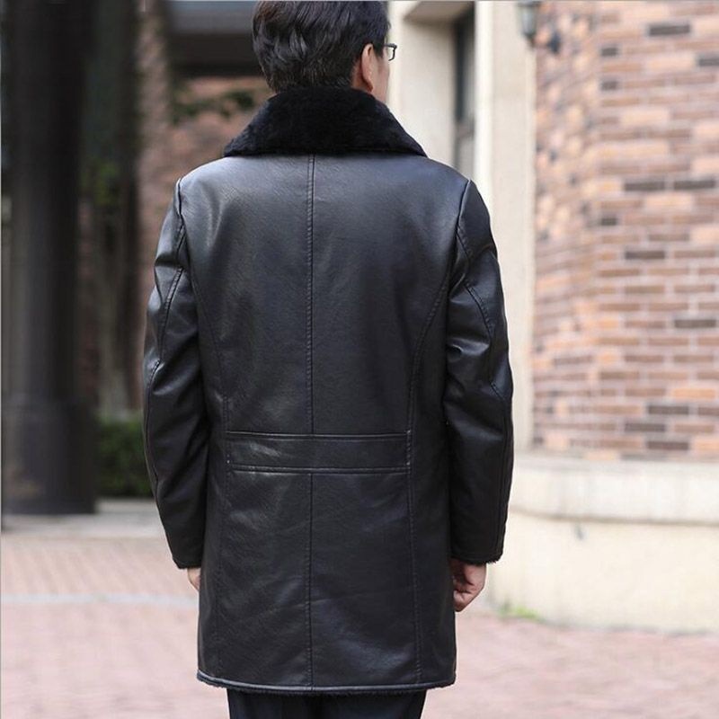 중년 및 노인 아빠의 남성용 중간 길이 가죽 자켓 플러스 벨벳 두꺼운 대형 모피 칼라 탈착식 겨울 2024 새로운 스타일스토어 가기