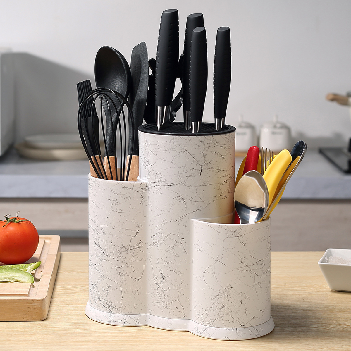 주방 나이프 랙 보관 랙 조리대 다기능 젓가락 스푼 배럴 나이프 홀더 통합 보관 상자 가정용 주방 나이프 랙
