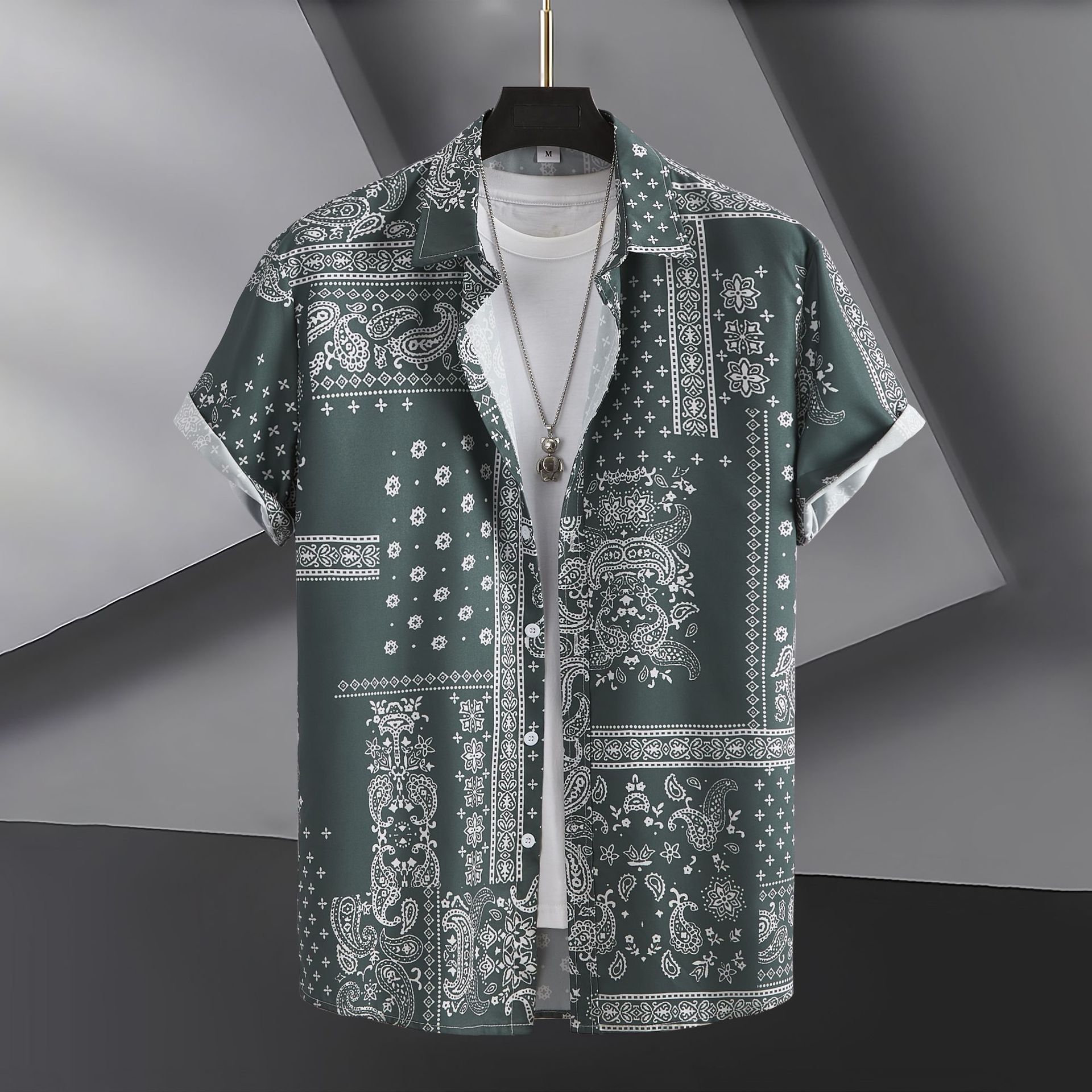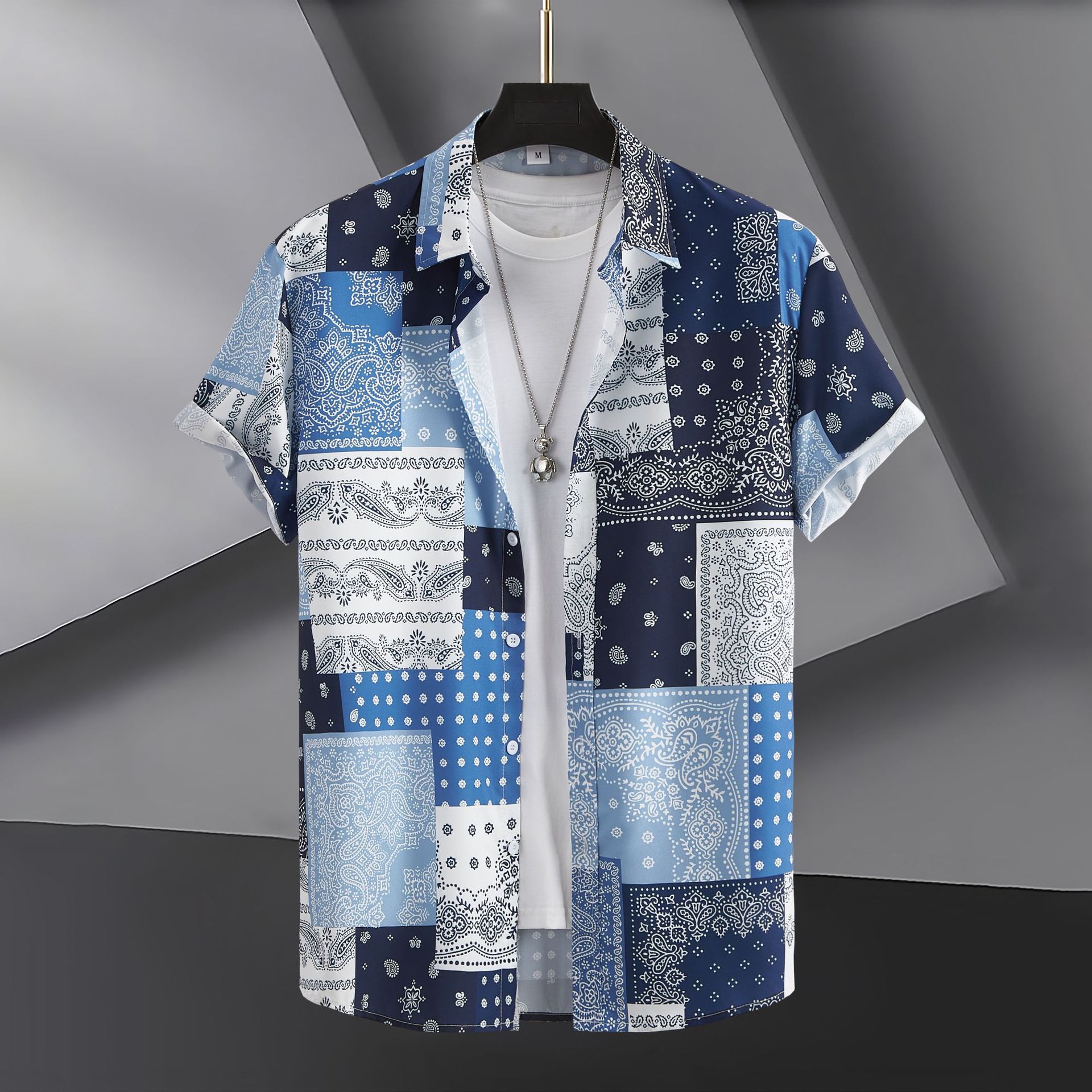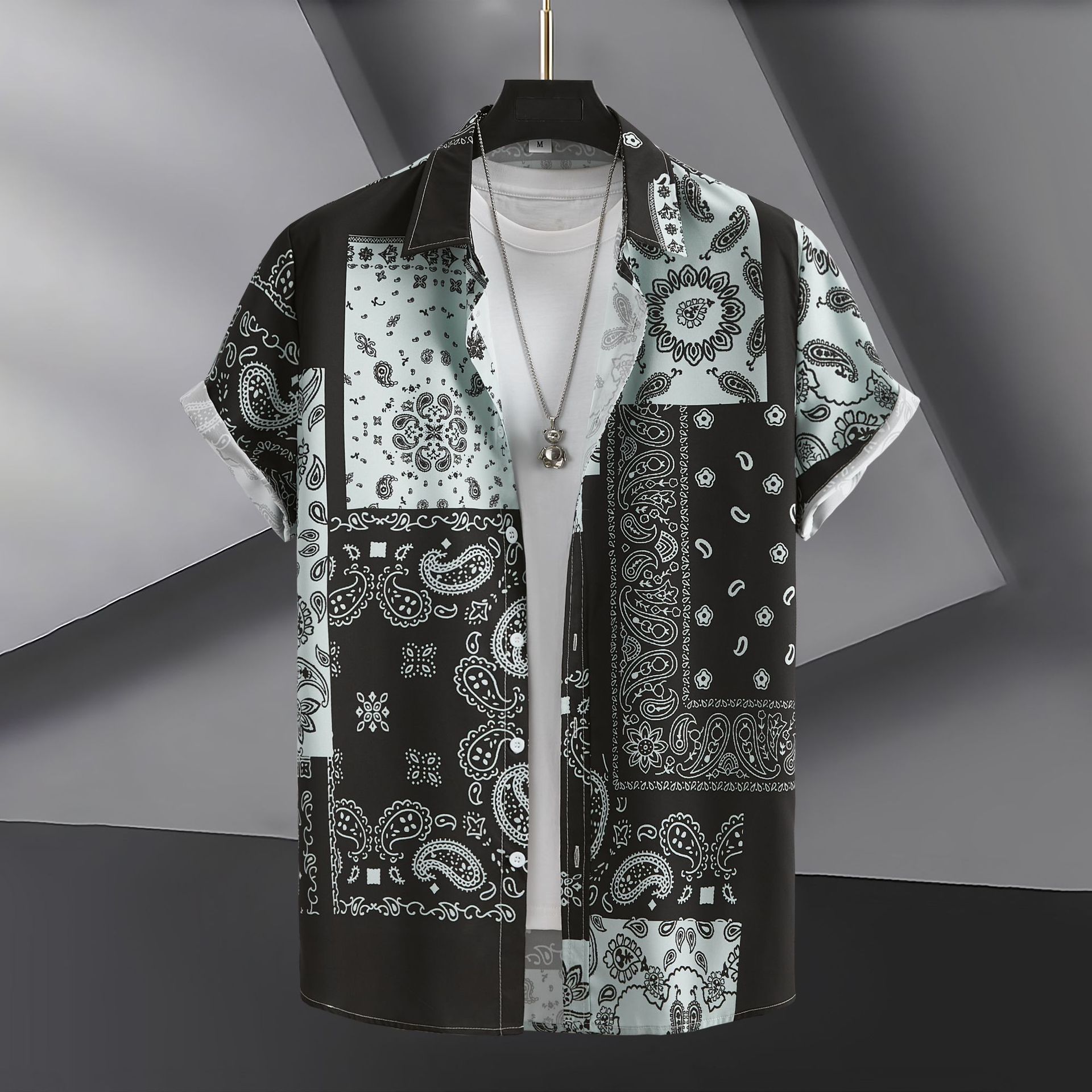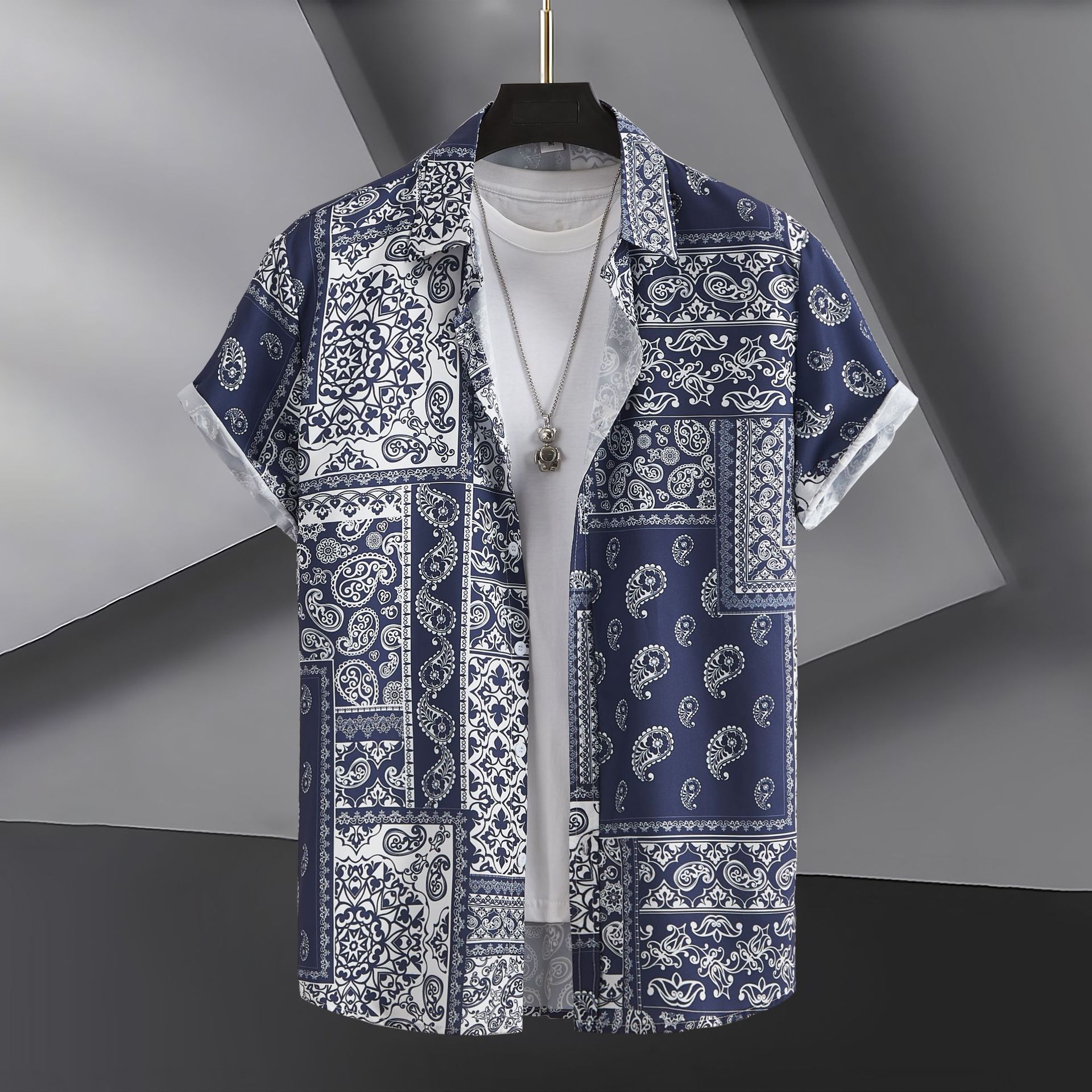 2023 국경 무역 남성 패션 캐주얼 페이즐리 스타일 디지털 인쇄 반팔 셔츠