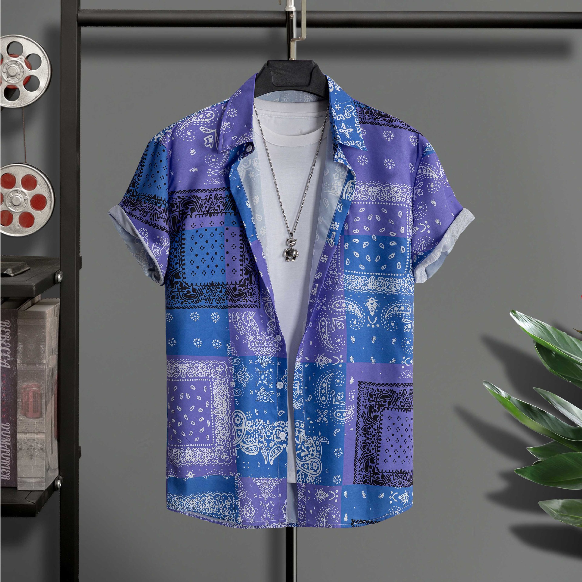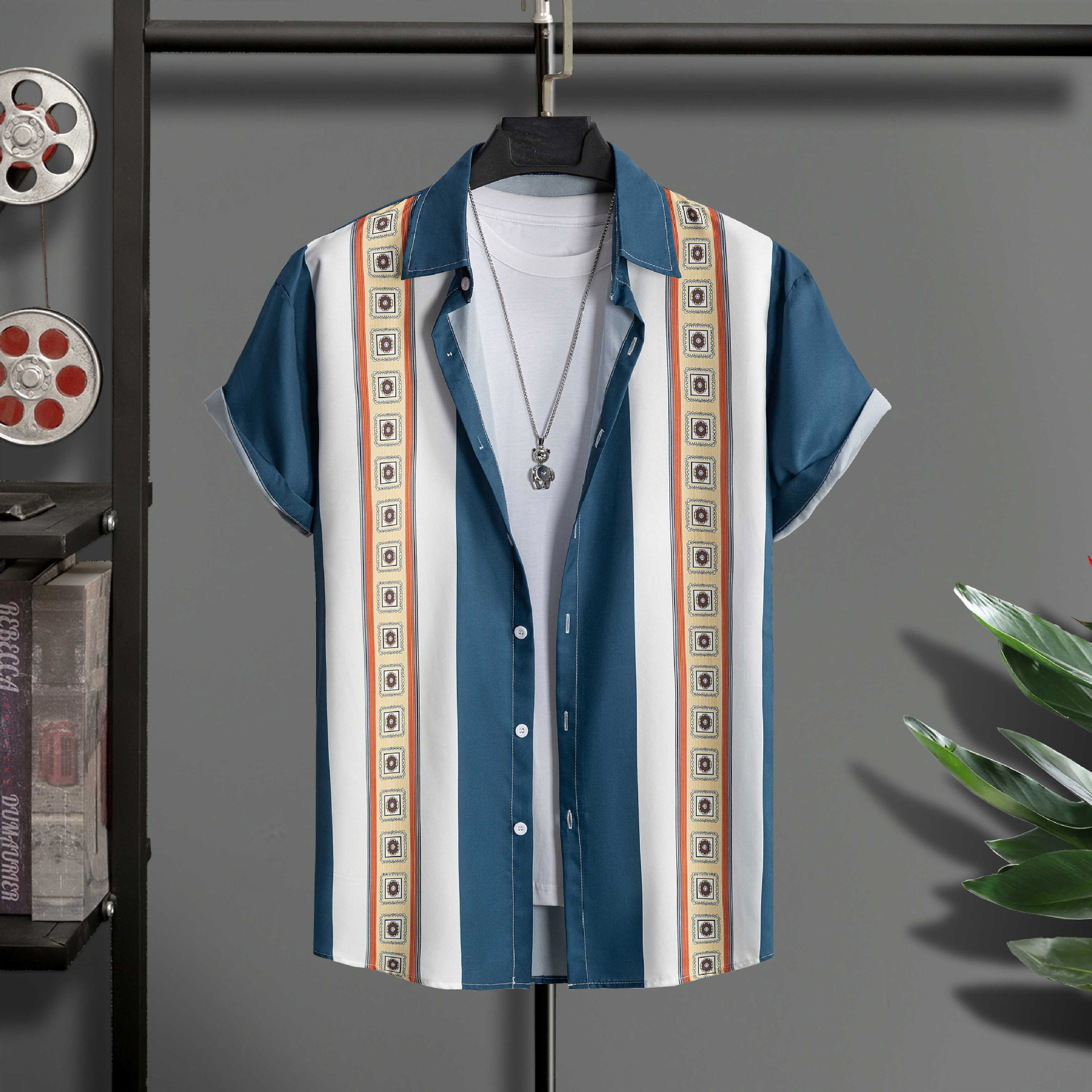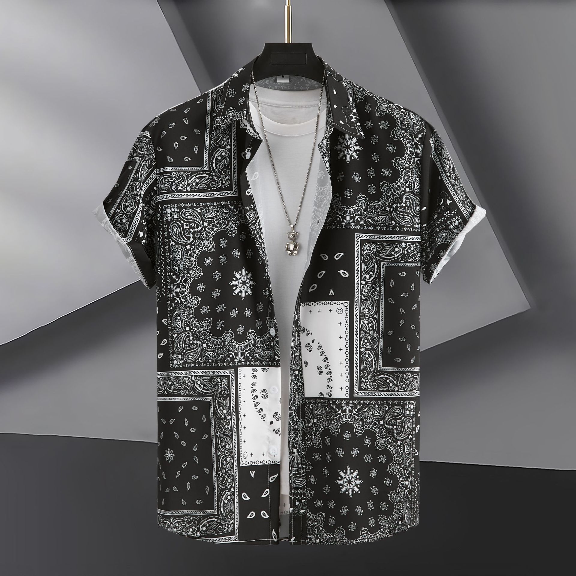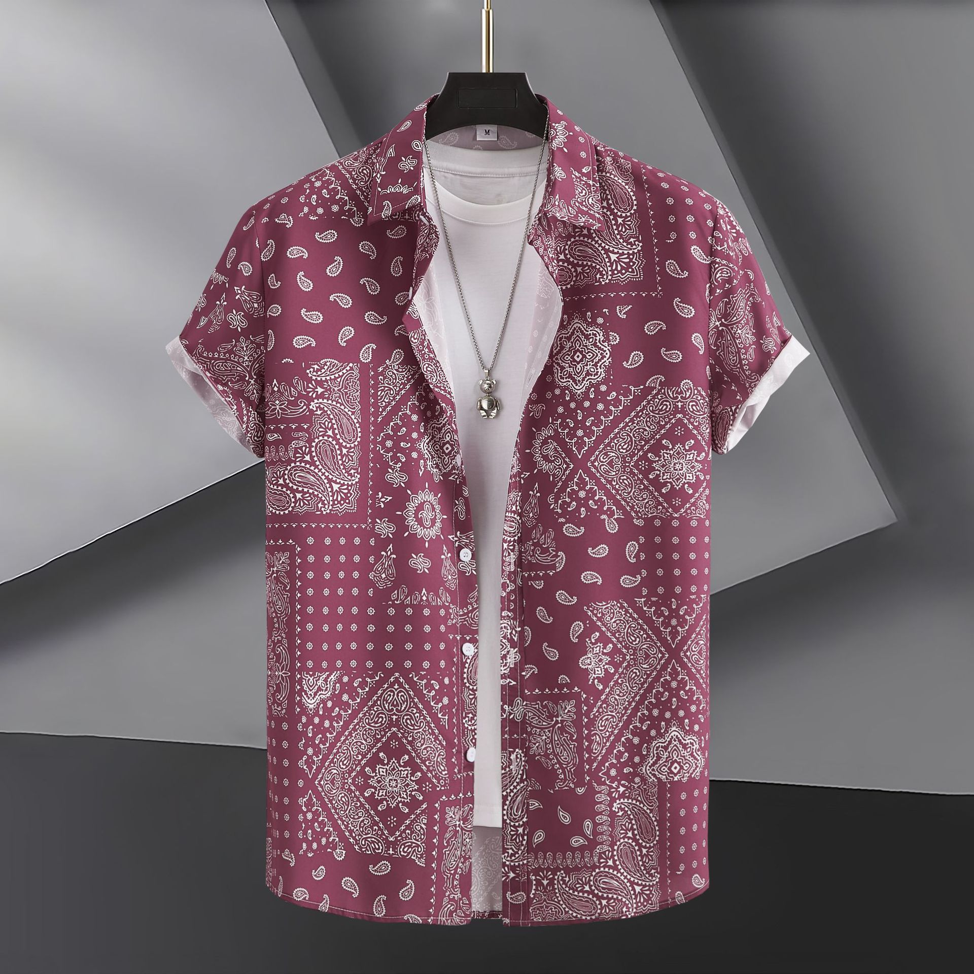 2023 국경 무역 남성 패션 캐주얼 페이즐리 스타일 디지털 인쇄 반팔 셔츠
