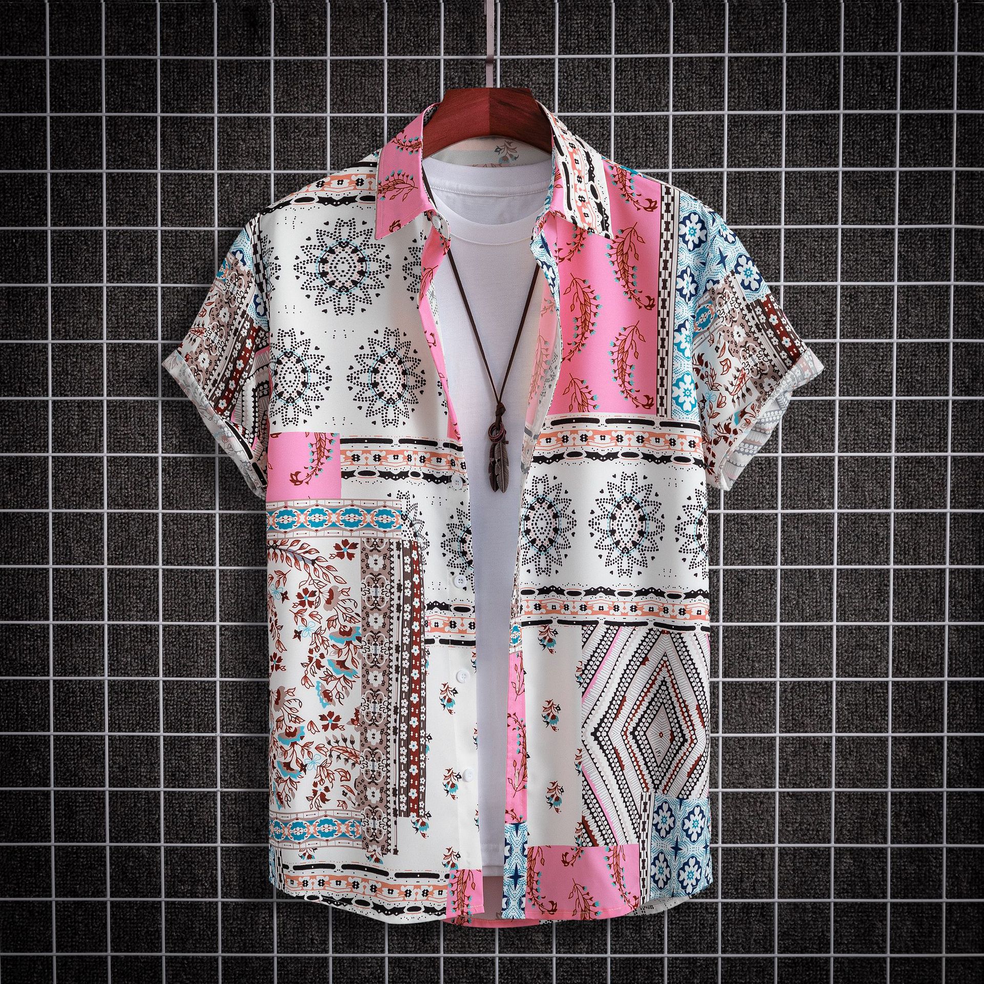 2023 국경 무역 남성 패션 캐주얼 페이즐리 스타일 디지털 인쇄 반팔 셔츠스토어 가기