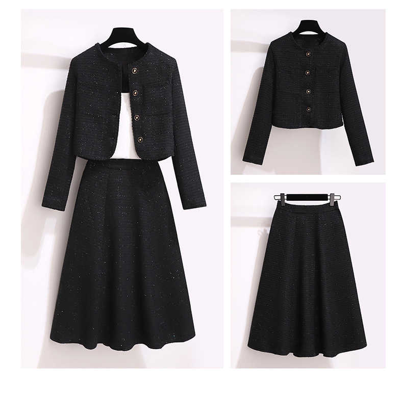플러스 사이즈 여성의 작은 샤넬 스타일 탑 스커트 세트 가을 2023 새로운 통통녀 스타일 투피스 세트