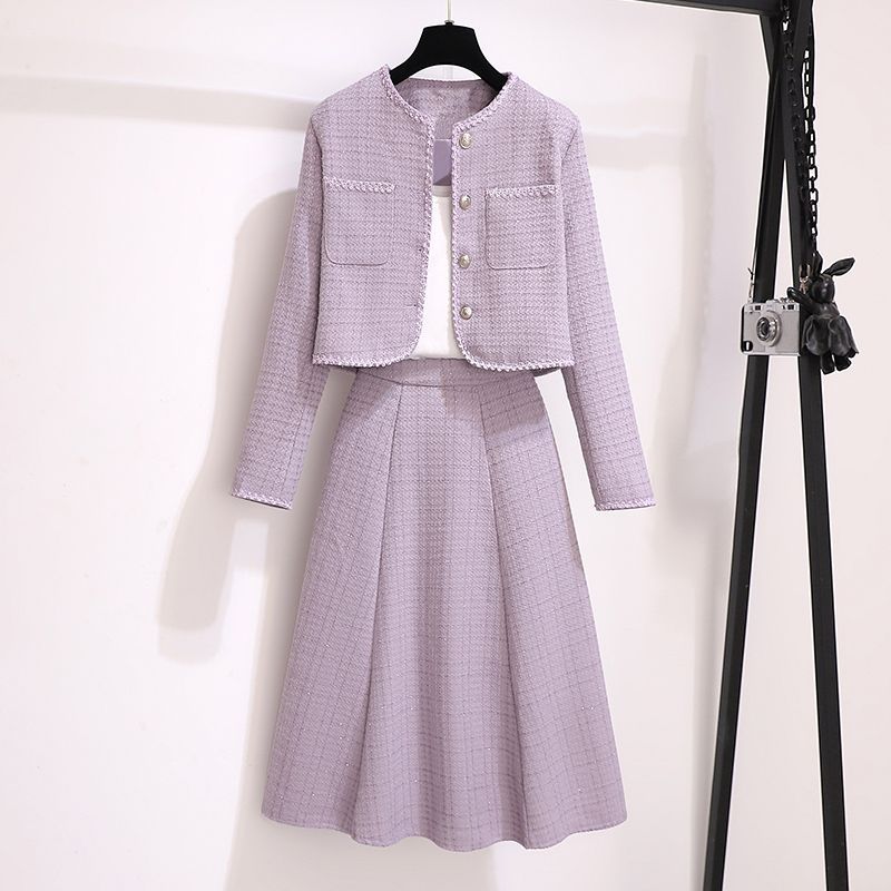 플러스 사이즈 여성의 작은 샤넬 스타일 탑 스커트 세트 가을 2023 새로운 통통녀 스타일 투피스 세트스토어 가기