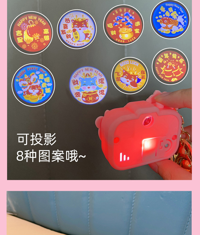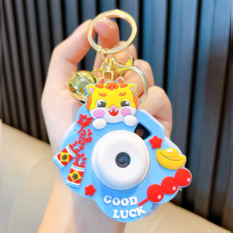 Wuan Dragon Year Mengmeng 리틀 드래곤 프로젝션 카메라 키 체인 중국 레드 마스코트 자동차 키 체인 봄 축제 쥬얼리스토어 가기