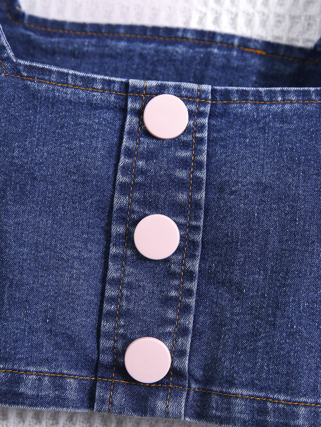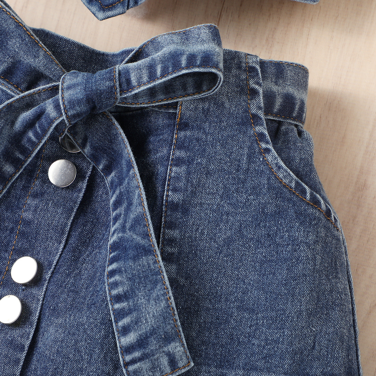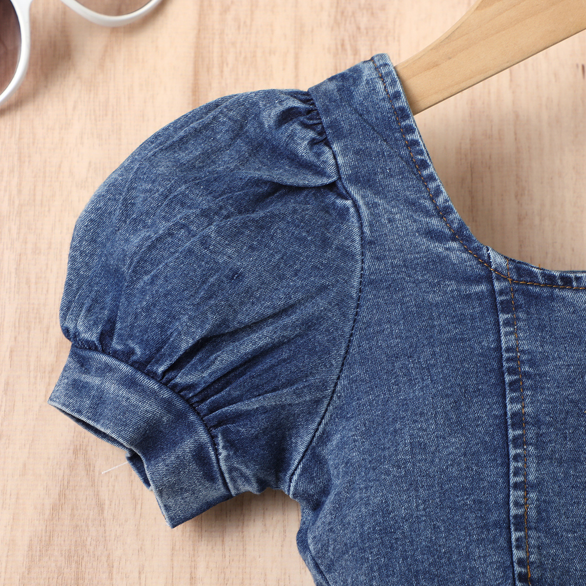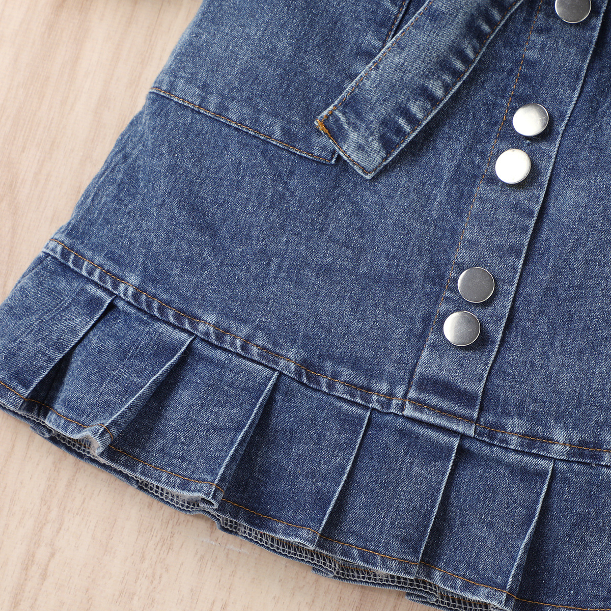 유럽과 미국의 국경 간 아동복 소녀 광장 칼라 랜턴 슬리브 상단 파편 패턴 주름 스커트 멀티 버튼 데님 소녀복 세트스토어 가기