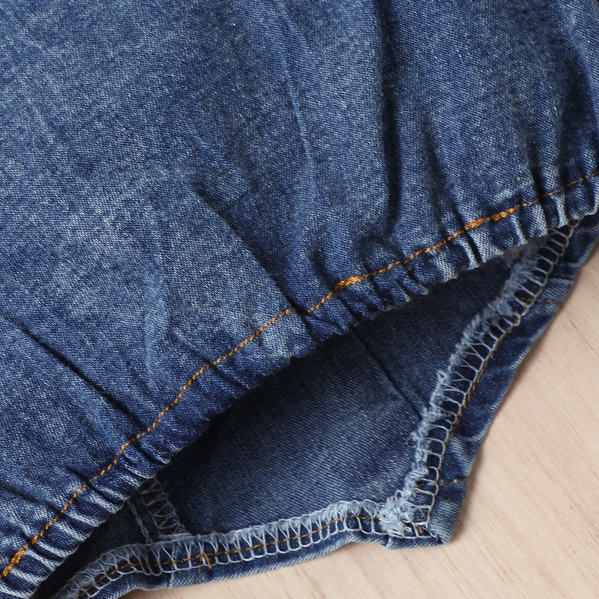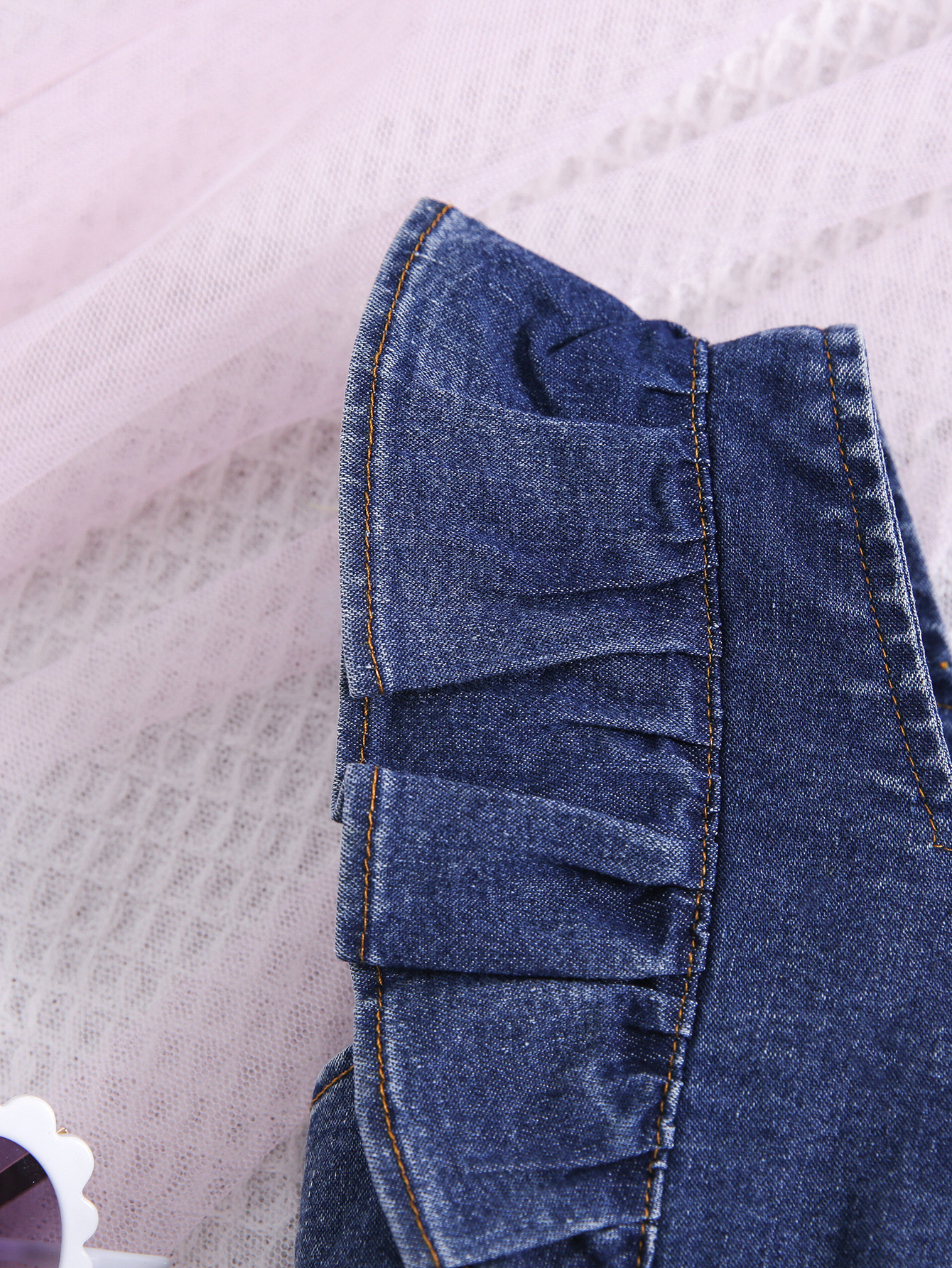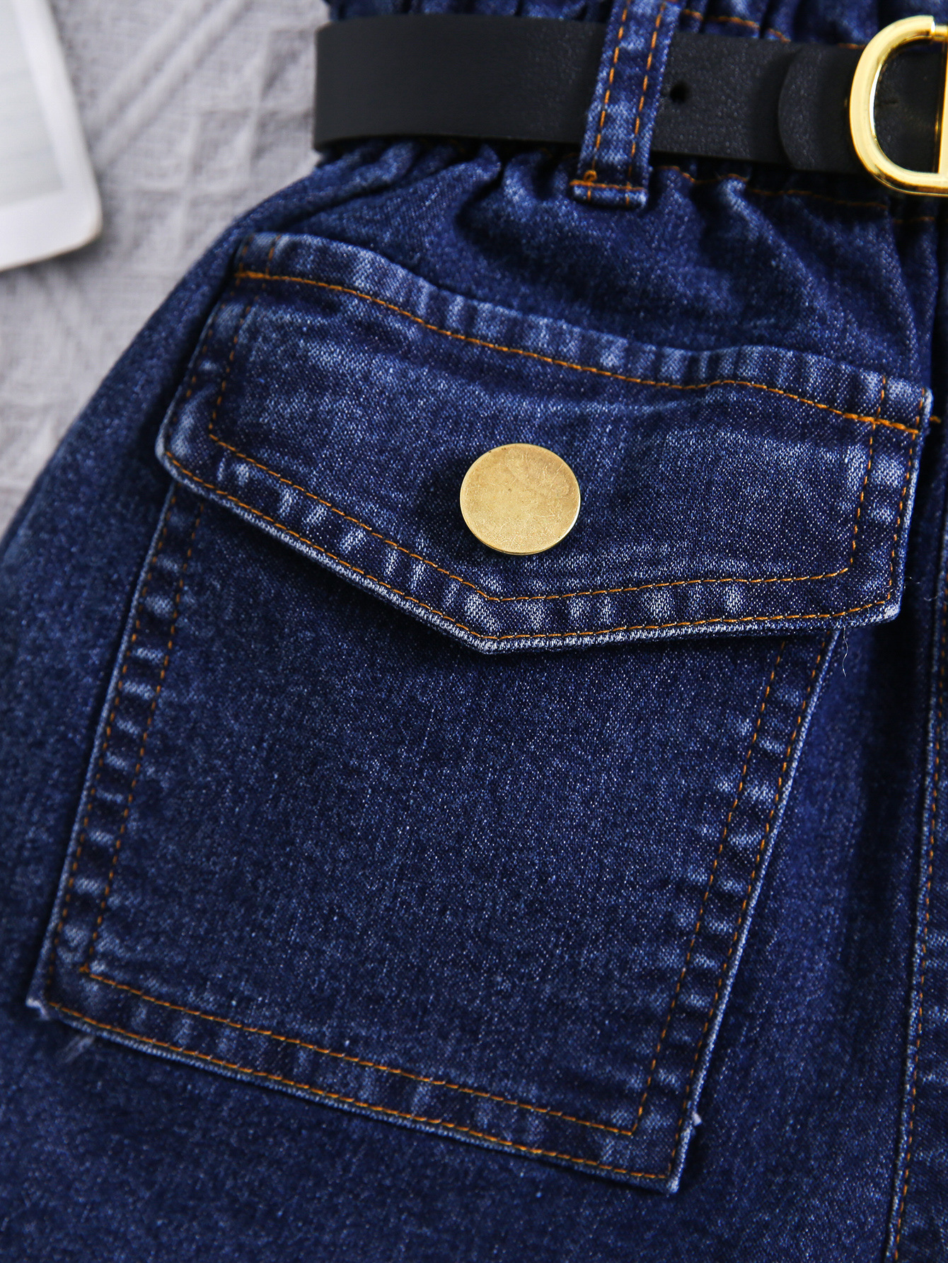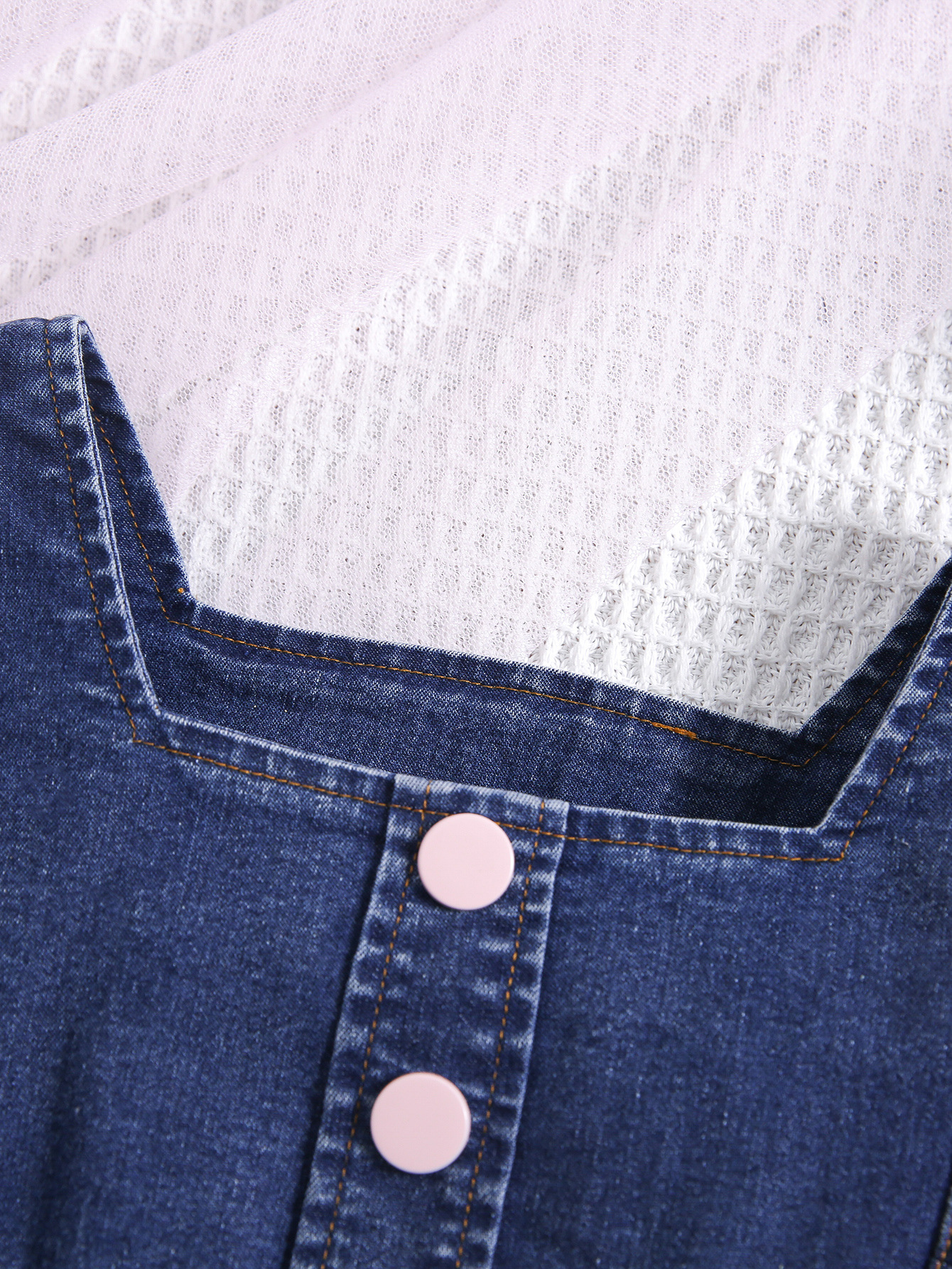 유럽과 미국의 국경 간 아동복 소녀 광장 칼라 랜턴 슬리브 상단 파편 패턴 주름 스커트 멀티 버튼 데님 소녀복 세트스토어 가기