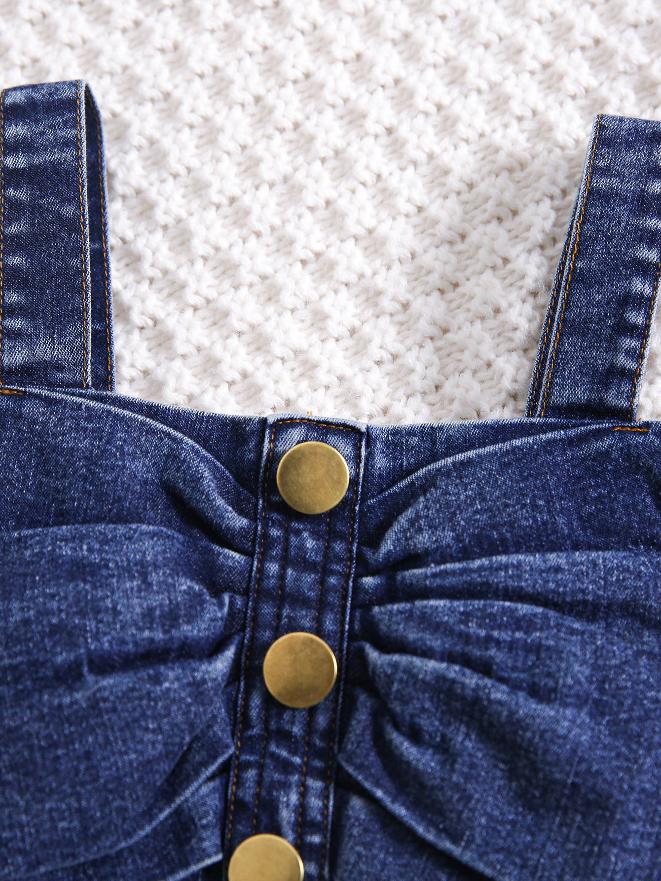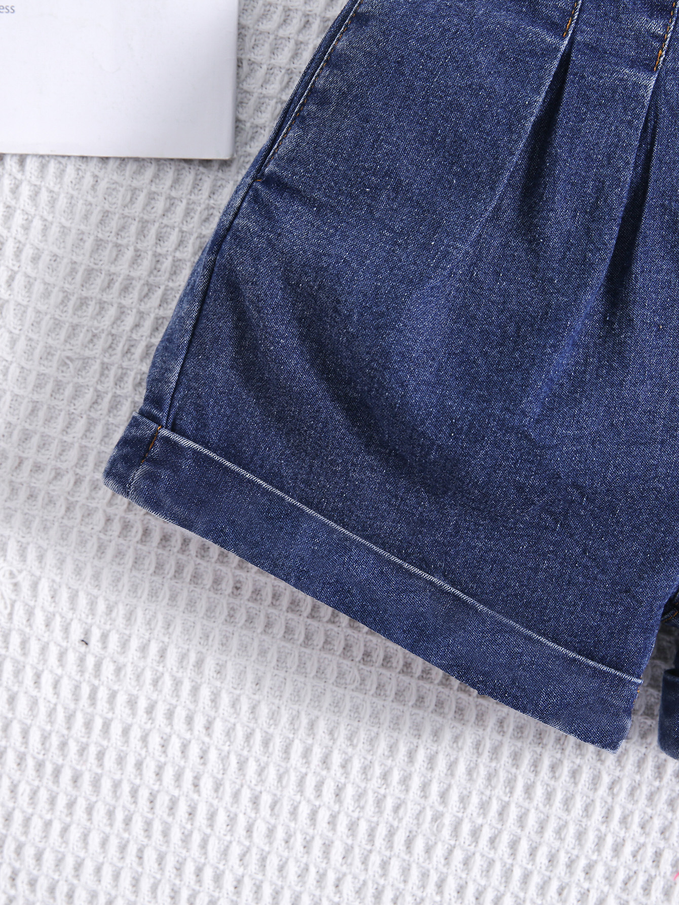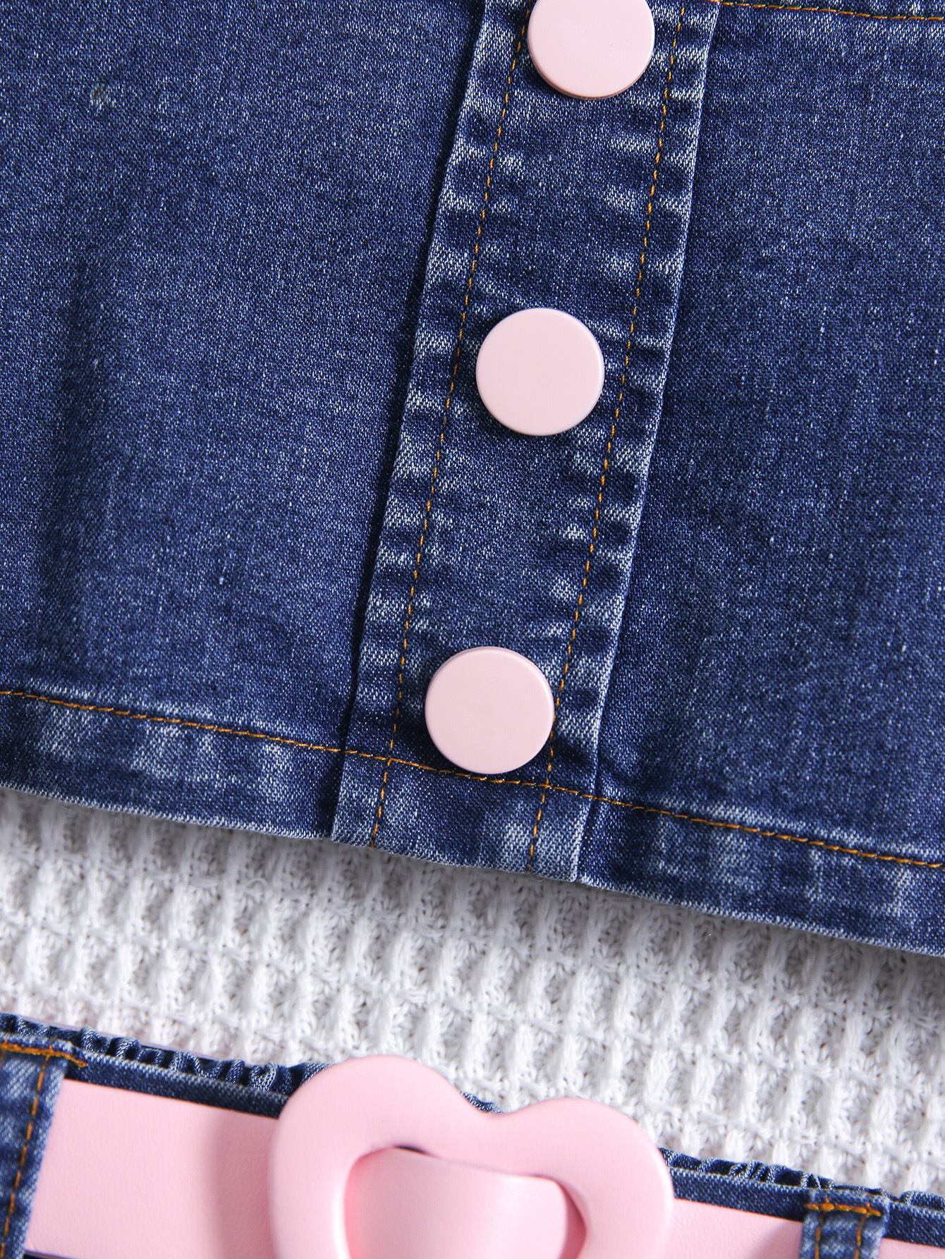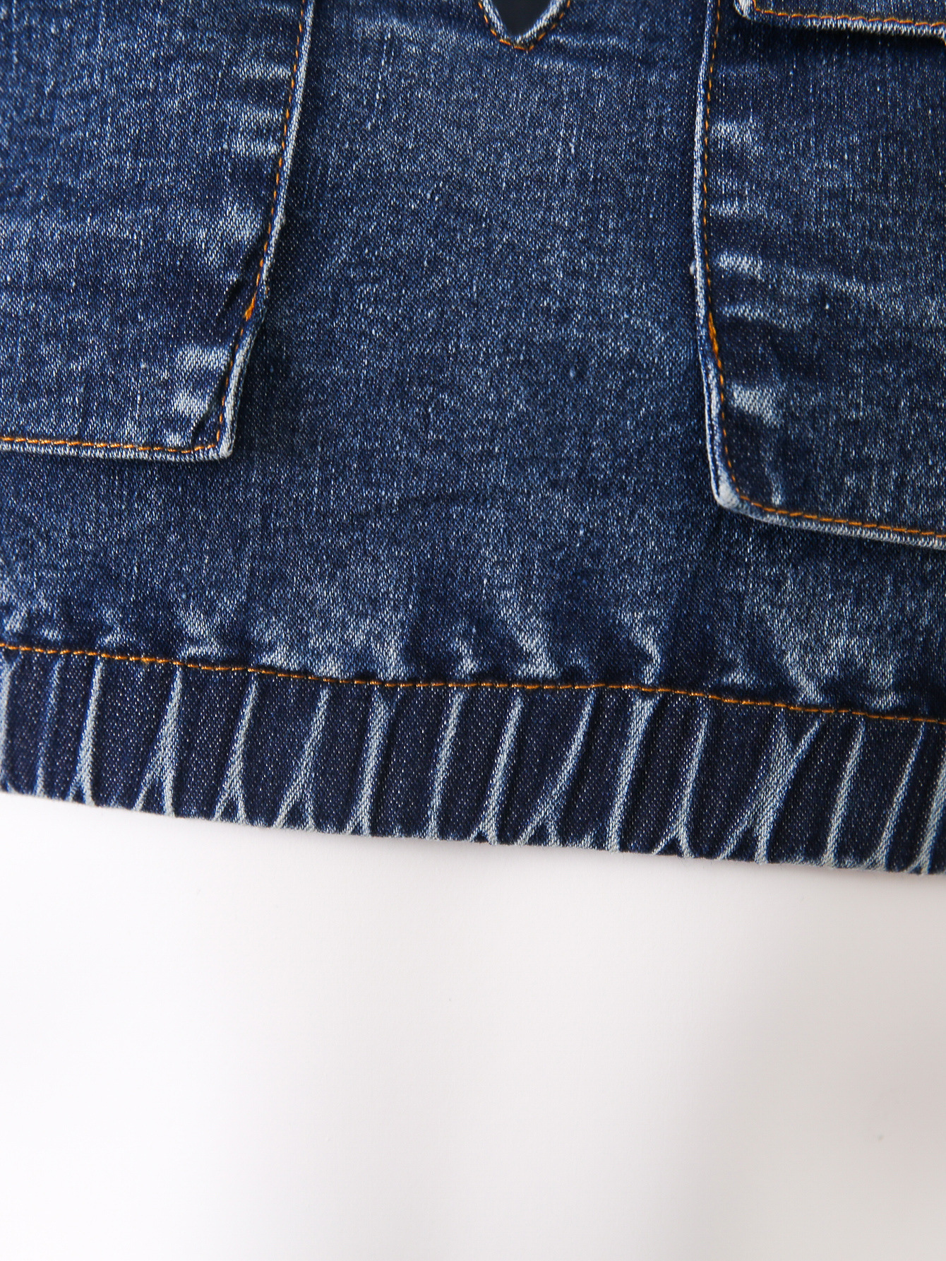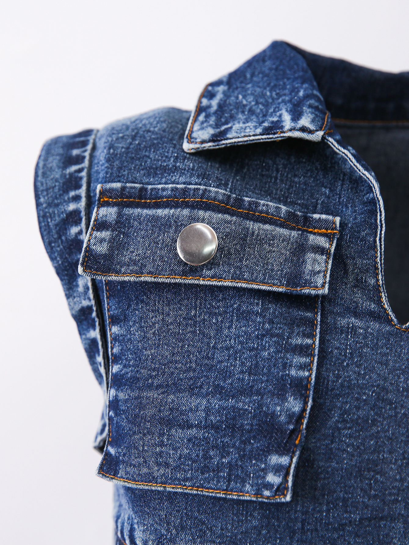 유럽과 미국의 국경 간 아동복 소녀 광장 칼라 랜턴 슬리브 상단 파편 패턴 주름 스커트 멀티 버튼 데님 소녀복 세트스토어 가기