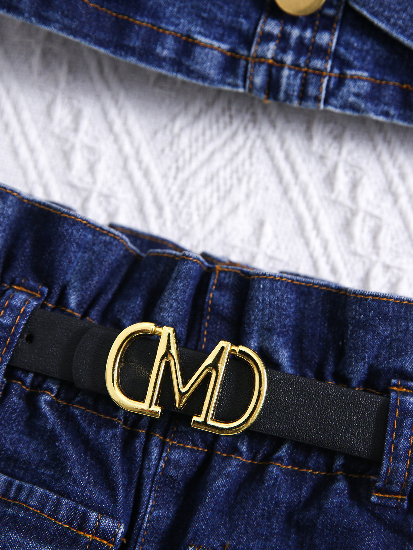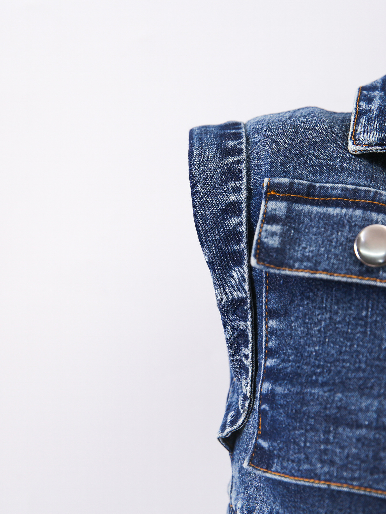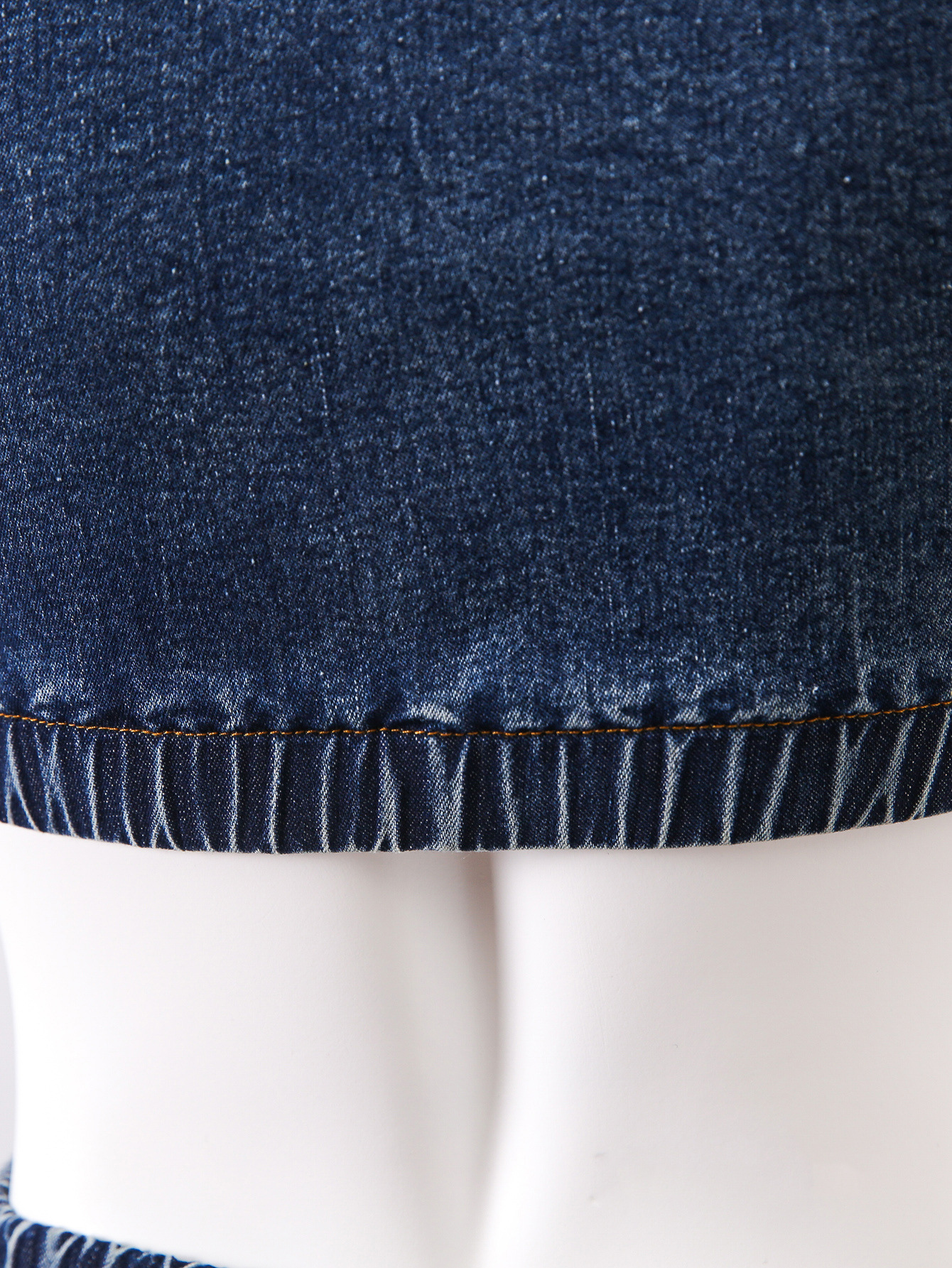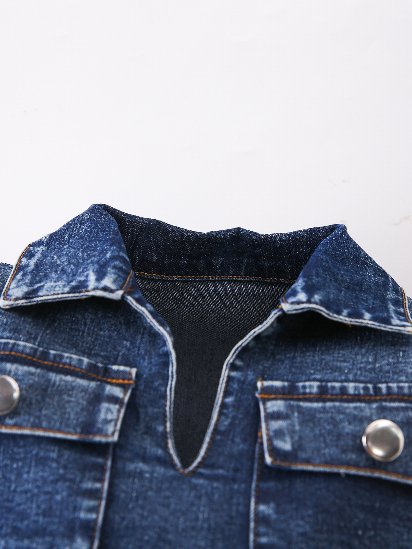 유럽과 미국의 국경 간 아동복 소녀 광장 칼라 랜턴 슬리브 상단 파편 패턴 주름 스커트 멀티 버튼 데님 소녀복 세트스토어 가기