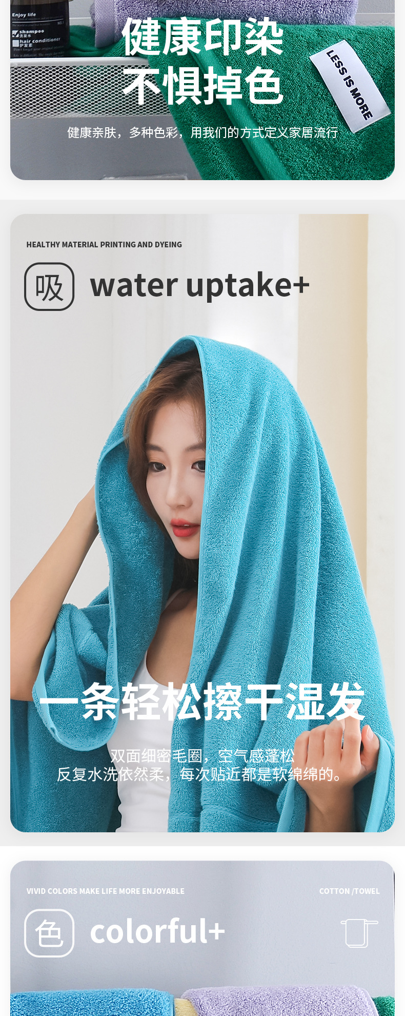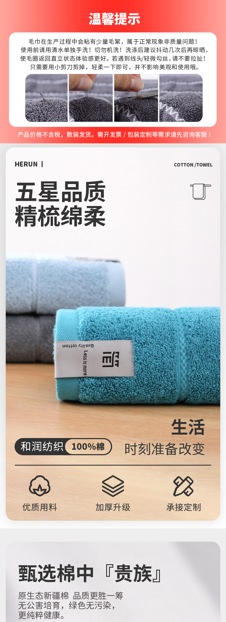 수건 100% 면 두꺼운 성인 남성과 여성 가정용 세안 수건 긴 스테이플 면 부드러운 비 흘리기 수건 도매스토어 가기