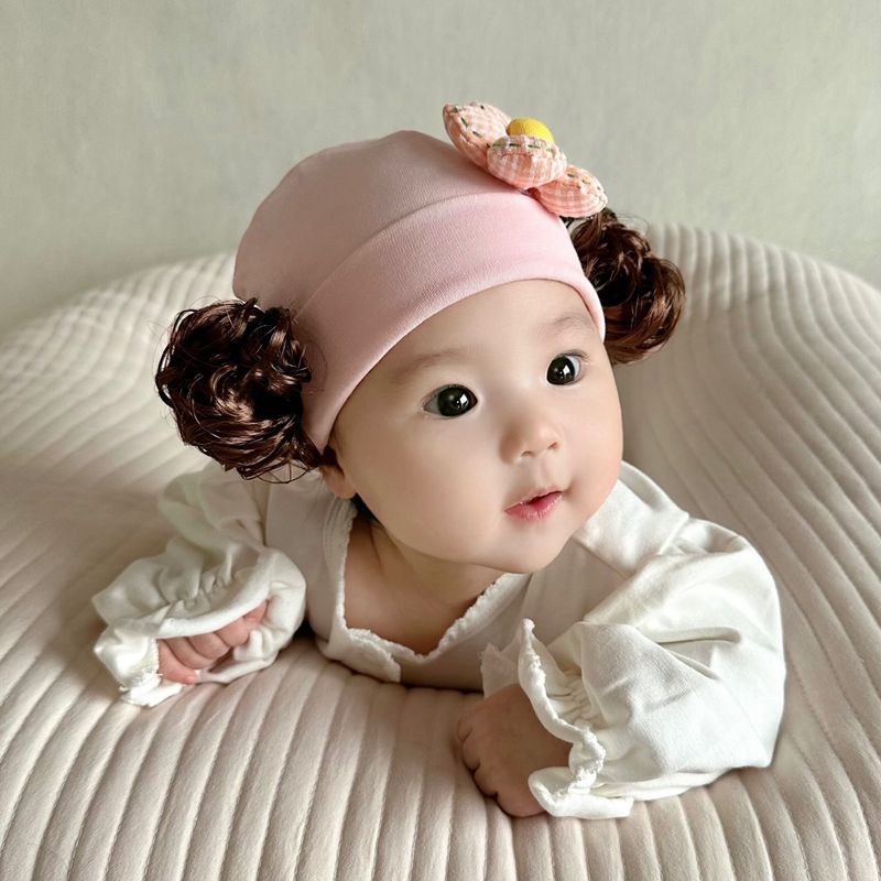 아기 소녀 봄과 가을 모자 귀여운 공주 가발 모자 귀여운 면 큰 스트레치 아기 태아 모자 원래 디자인스토어 가기