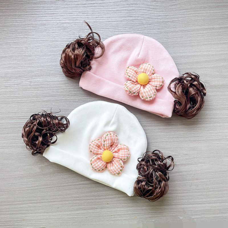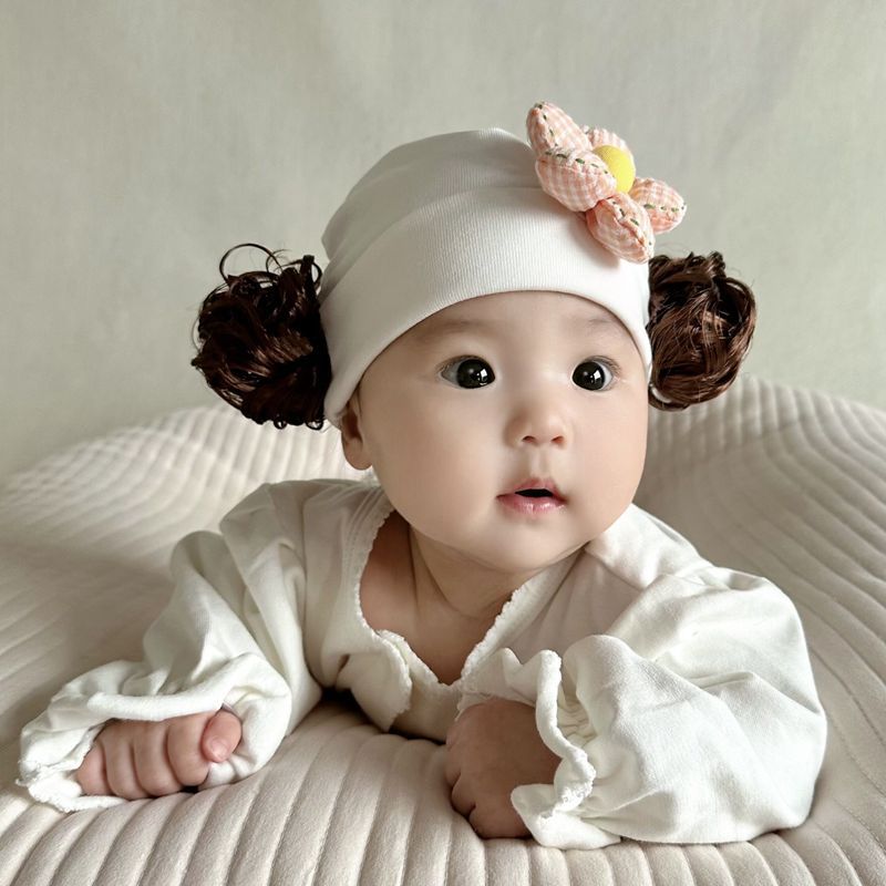 아기 소녀 봄과 가을 모자 귀여운 공주 가발 모자 귀여운 면 큰 스트레치 아기 태아 모자 원래 디자인