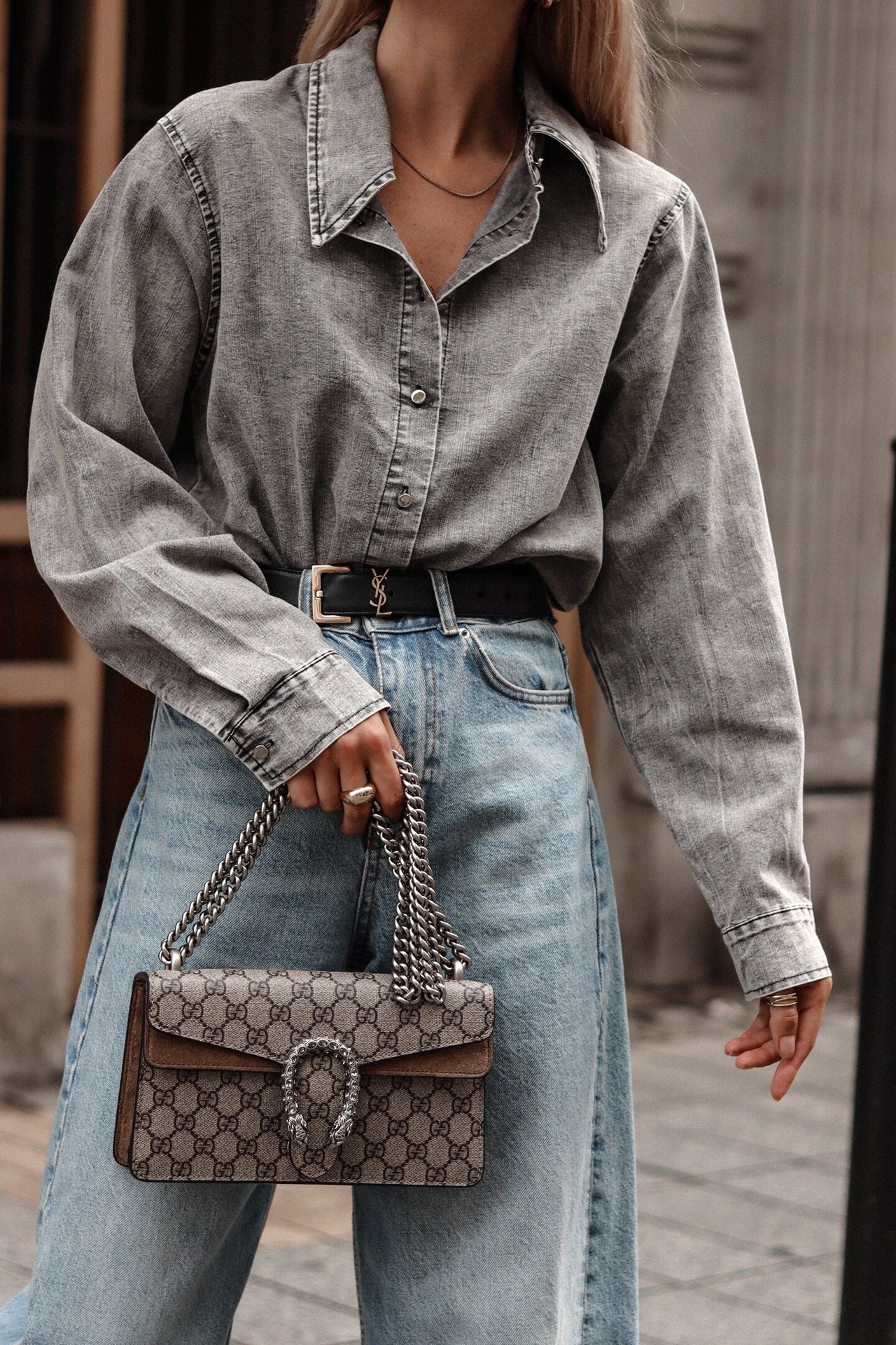 23 년 유럽과 미국의 국경 대외 무역 가을과 겨울 다목적 옷깃 캐주얼 패션 스트리트 스타일 데님 셔츠 여성을위한 32134