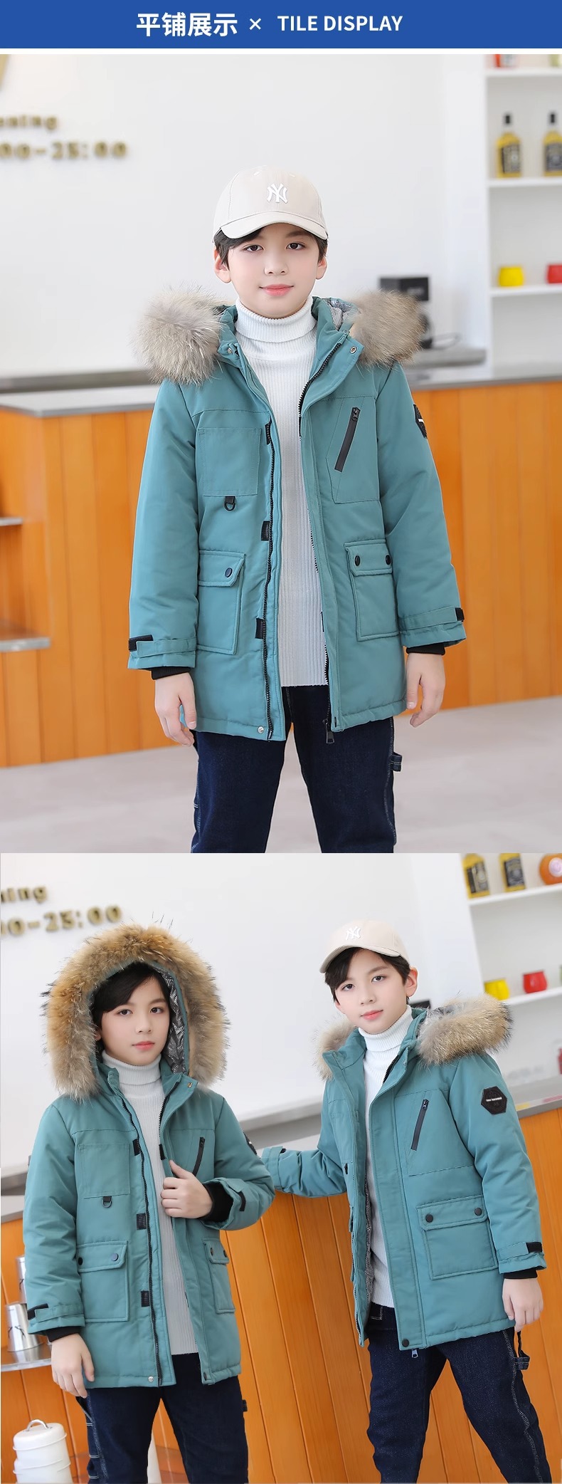 남아용 두꺼운 패딩 코트 2025 가을 겨울 신상 코튼 코트 어린이용 후드 큰 모피 칼라 코튼 의류스토어 가기