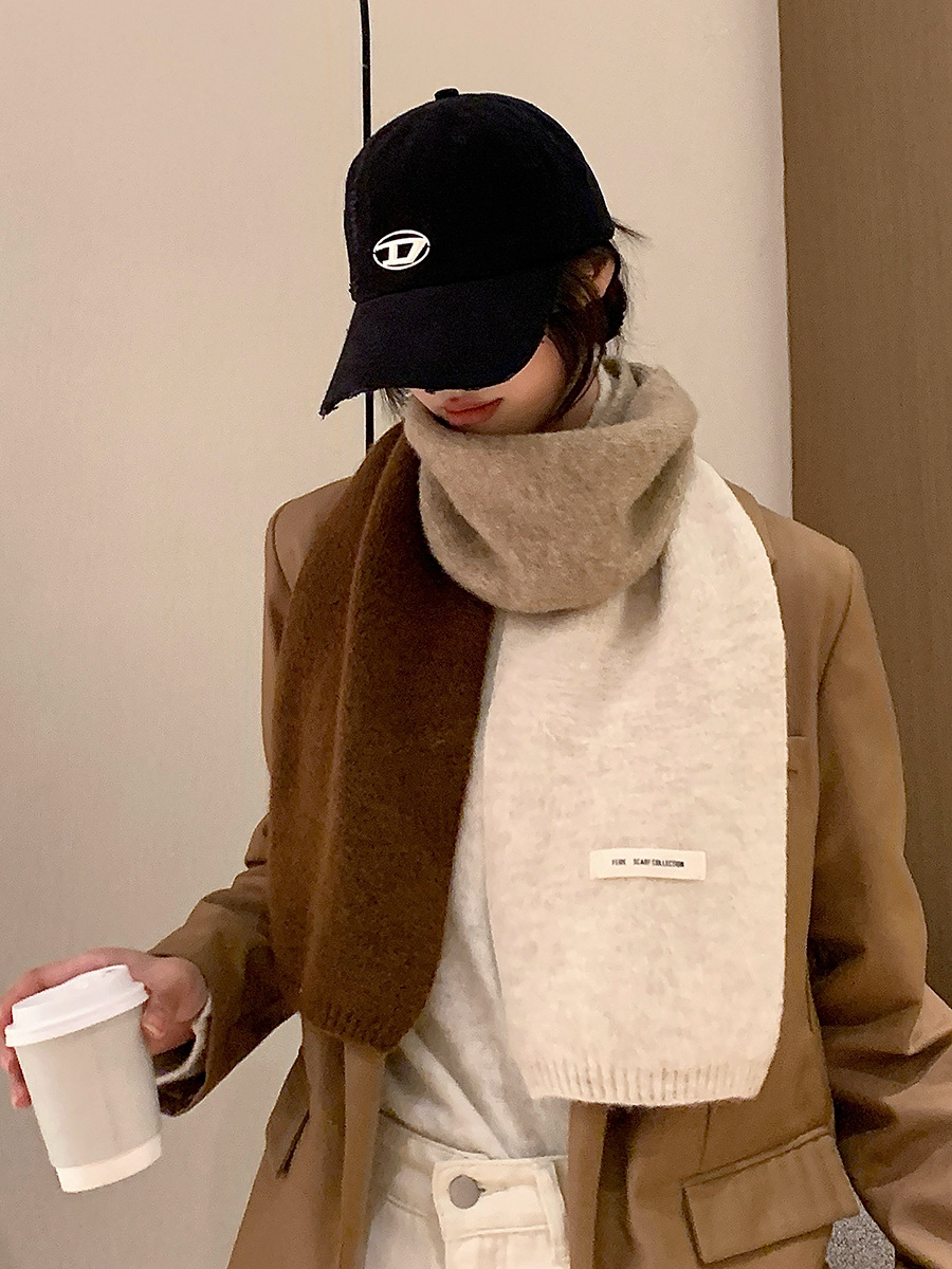 가을과 겨울 한국 스타일 스티칭 컬러 매칭 격자 무늬 긴 두꺼운 모든 매치 따뜻한 스카프 여성 스카프 커플 학생 단색스토어 가기