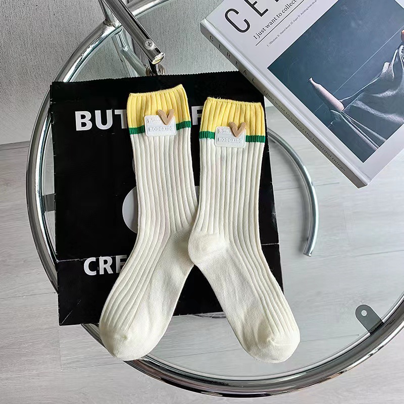 도파민 컬러 착용 넥타이 여름 얇은 양말 여성용 면 더블 바늘 더블 컬러 중간 튜브 액세서리 유행 양말스토어 가기