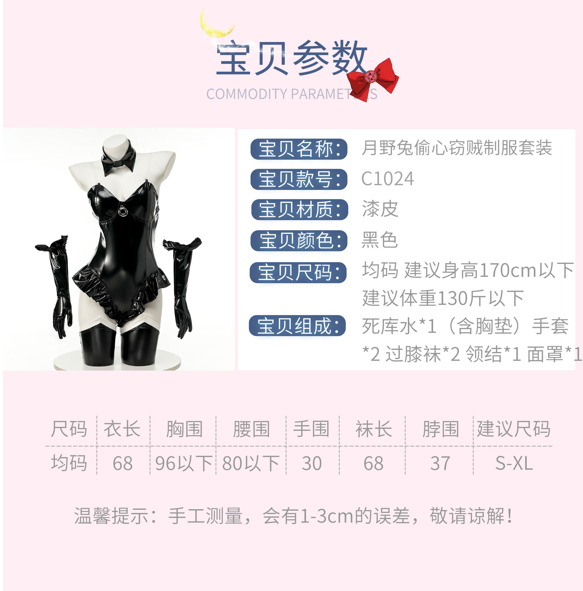 에나멜 가죽 섹시 속옷 세트 여성 코스프레 문 토끼 심장 도둑 코스프레 만화 세트 C1024