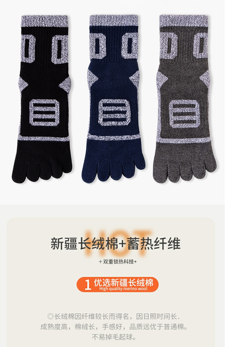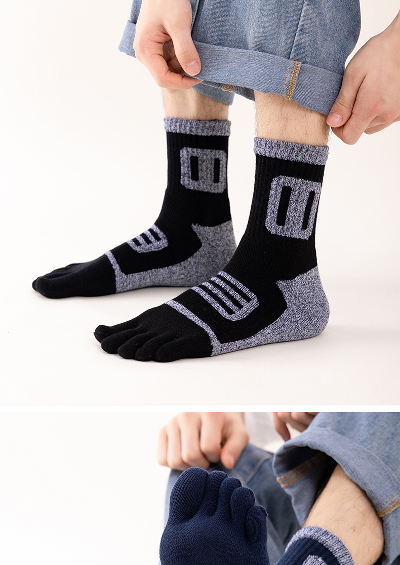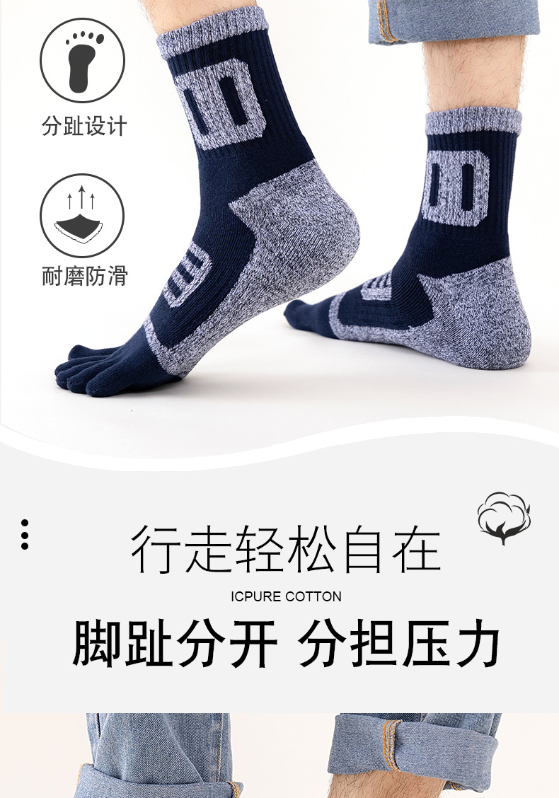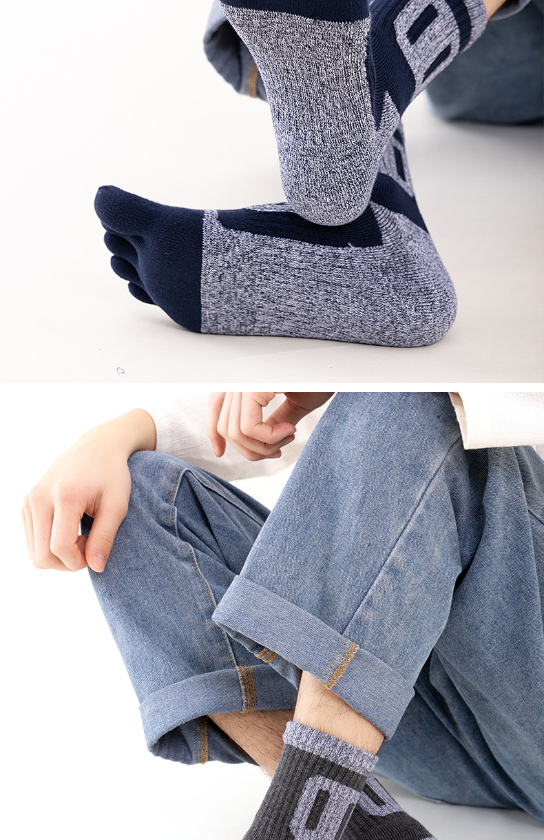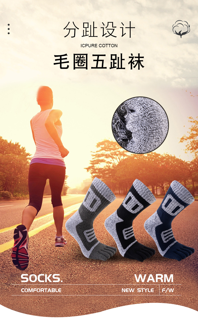 남성용 다섯 손가락 양말, 겨울 면 양말, 두껍고 따뜻한 테리 양말, 등산 양말, 수건 바닥 통기성 발가락 양말, 공장 직접 판매스토어 가기