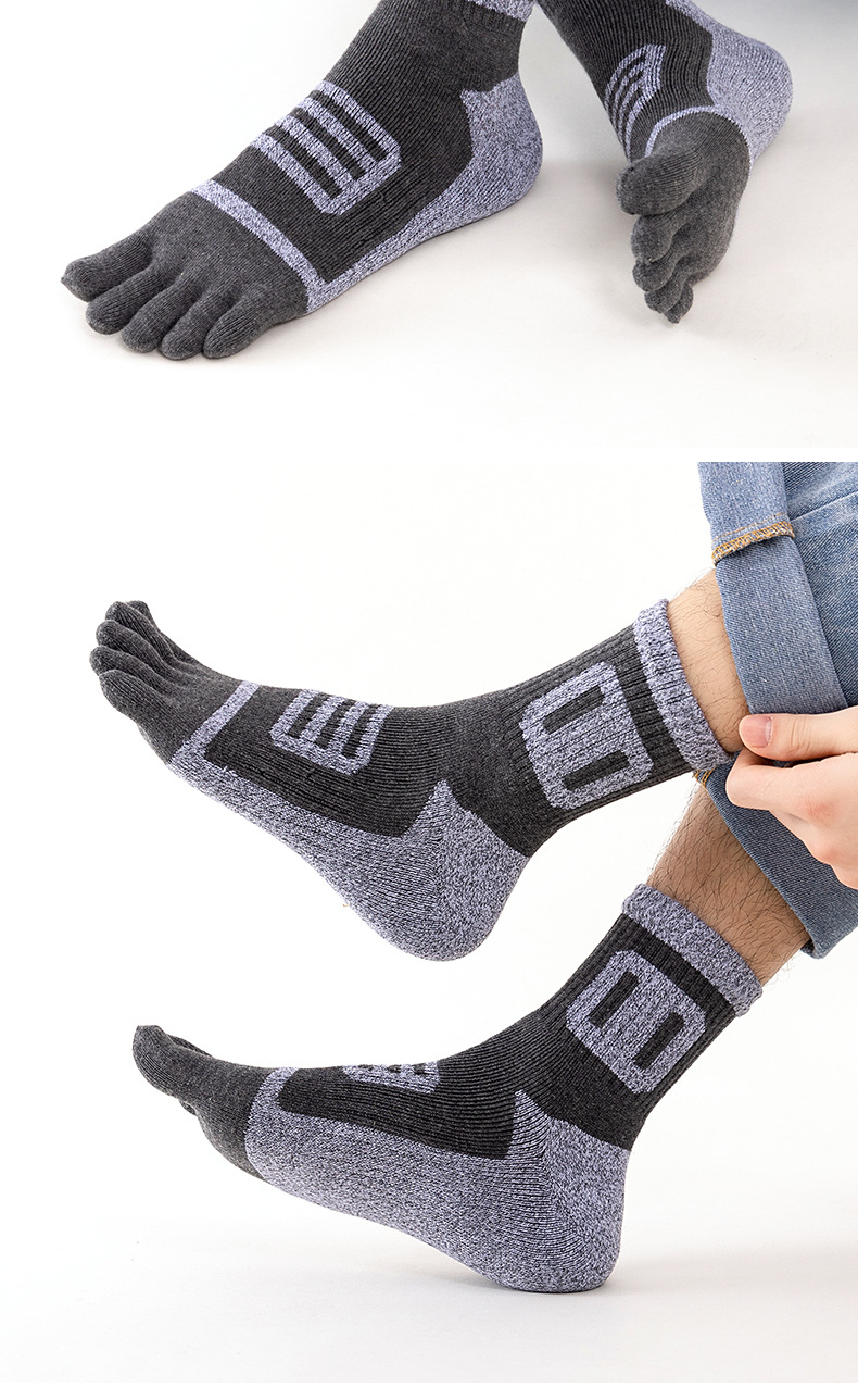 남성용 다섯 손가락 양말, 겨울 면 양말, 두껍고 따뜻한 테리 양말, 등산 양말, 수건 바닥 통기성 발가락 양말, 공장 직접 판매