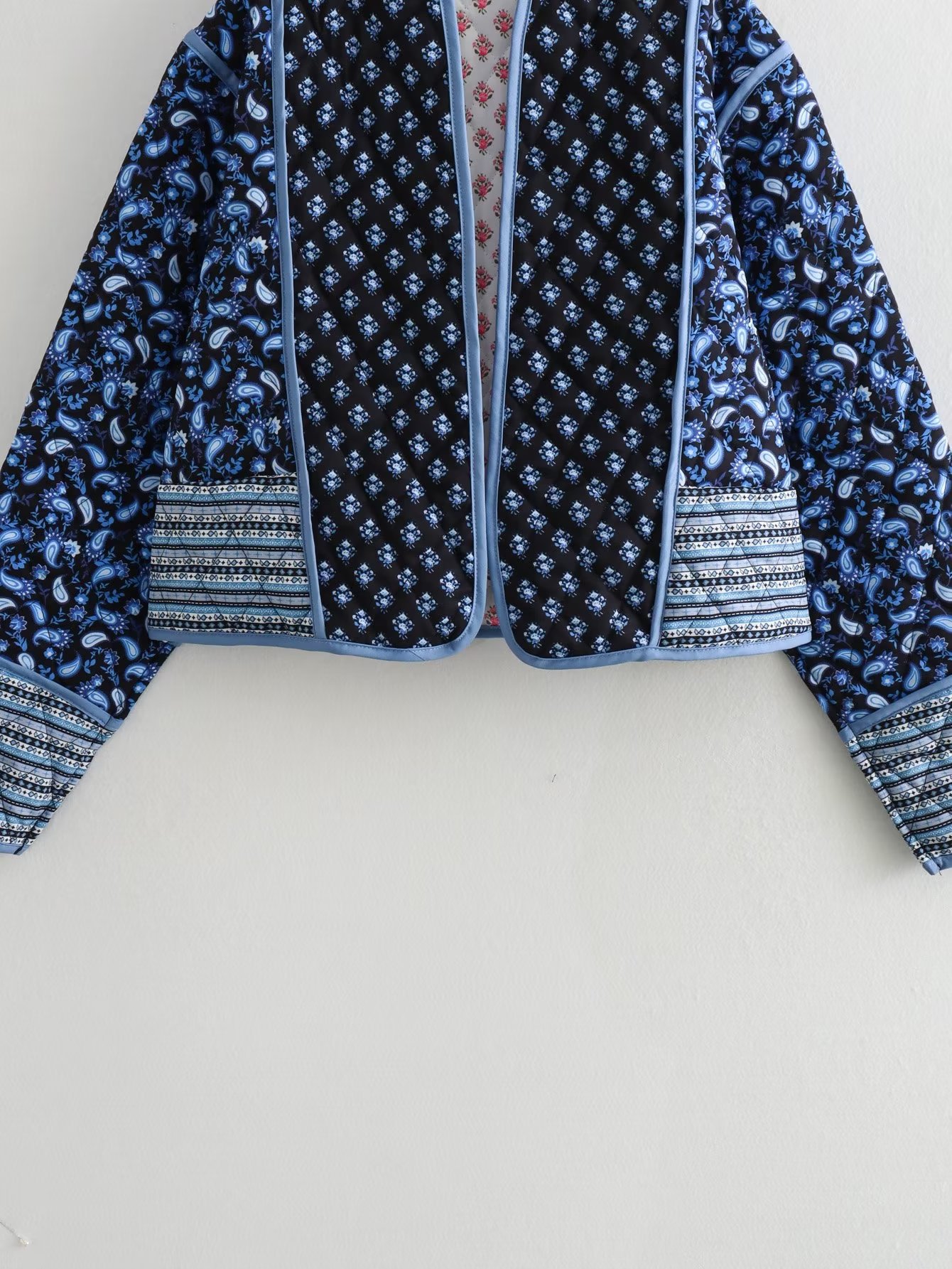 2024 가을, 겨울 새로운 유럽과 미국의 국경 간 여성 스트리트 패션 리버시블 프린트 코튼 자켓 w063 2765스토어 가기