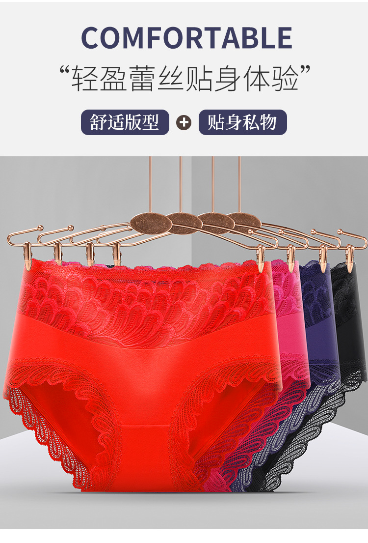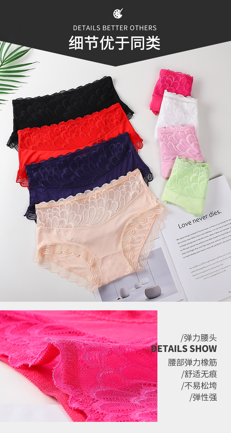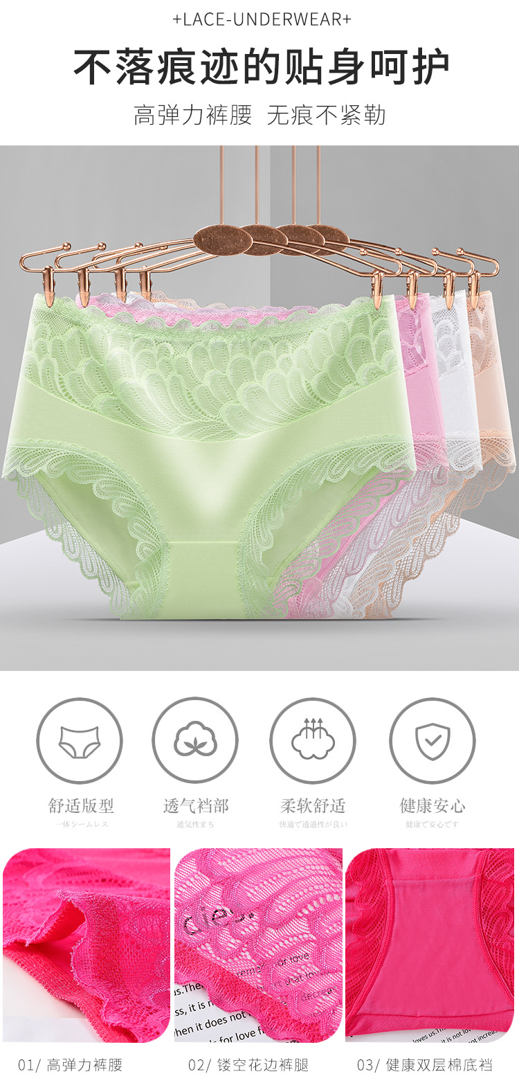 레이스 스티칭 디자인 브리프 고탄력 엉덩이 더블 레이어 면 바닥 가랑이 수분 흡수 피부 통기성 여성 속옷스토어 가기