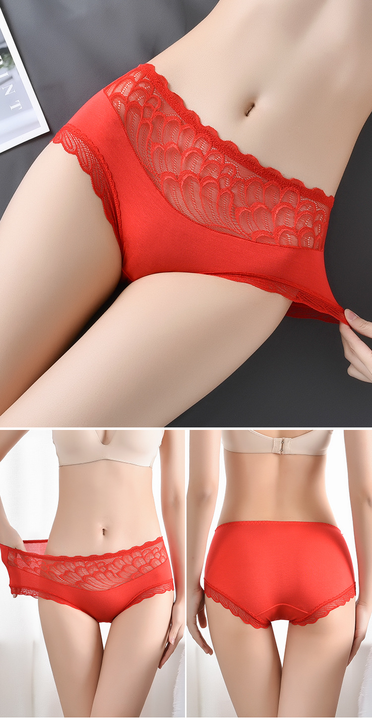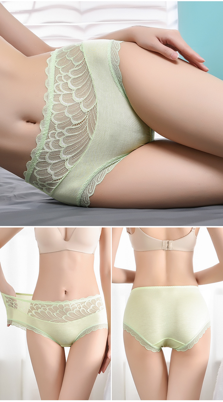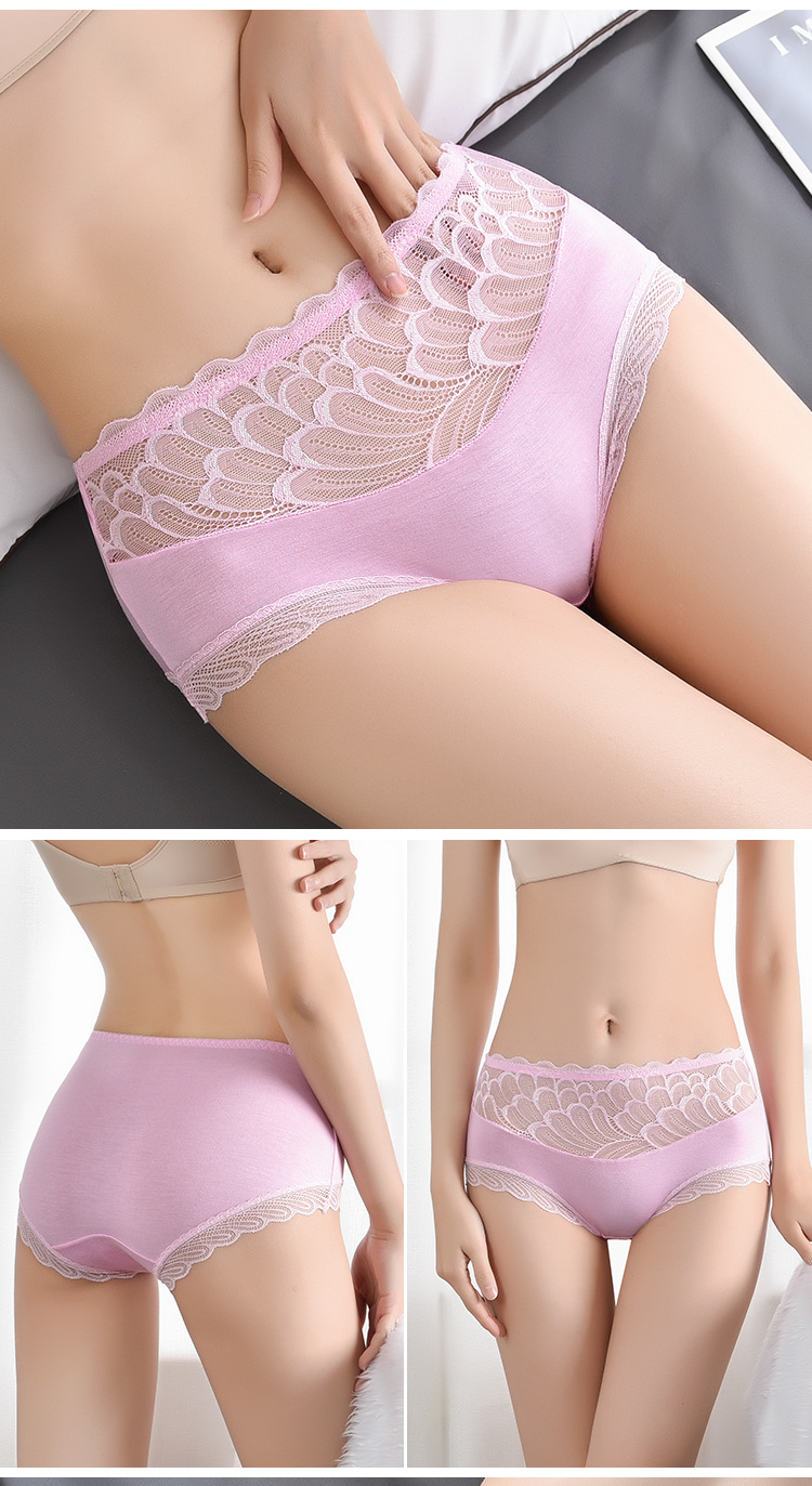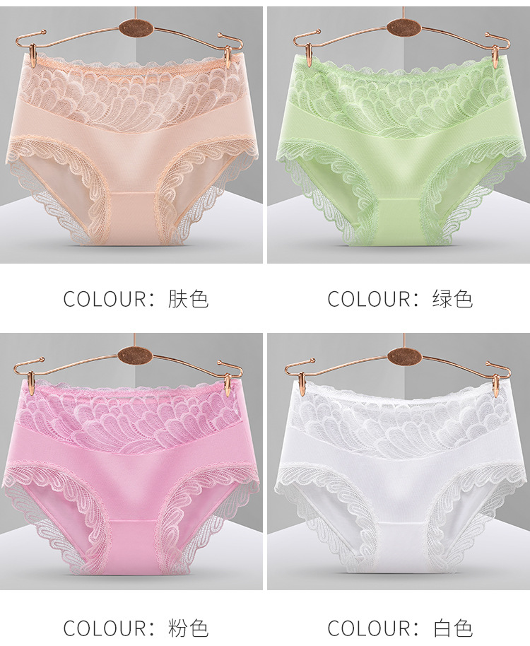 레이스 스티칭 디자인 브리프 고탄력 엉덩이 더블 레이어 면 바닥 가랑이 수분 흡수 피부 통기성 여성 속옷