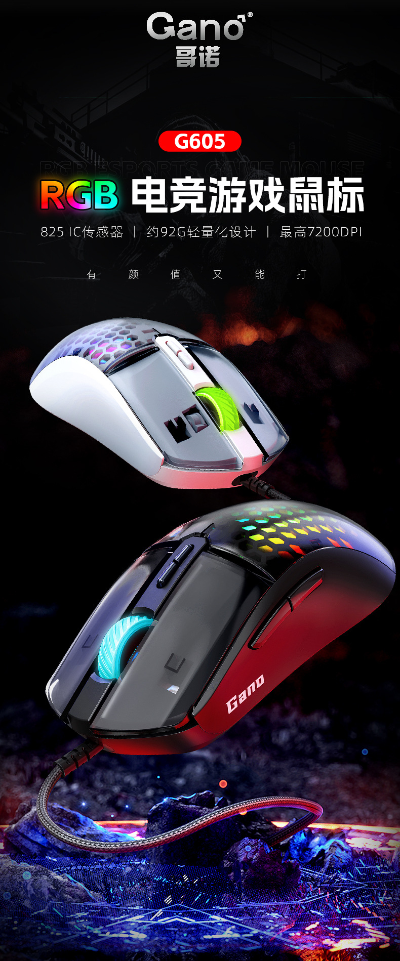 고노/가노 비디오 게임 G605 마우스 유선 매크로 네트워크 RGB 프레스 건 매크로 정의 usb 치킨 LOLCF 먹기