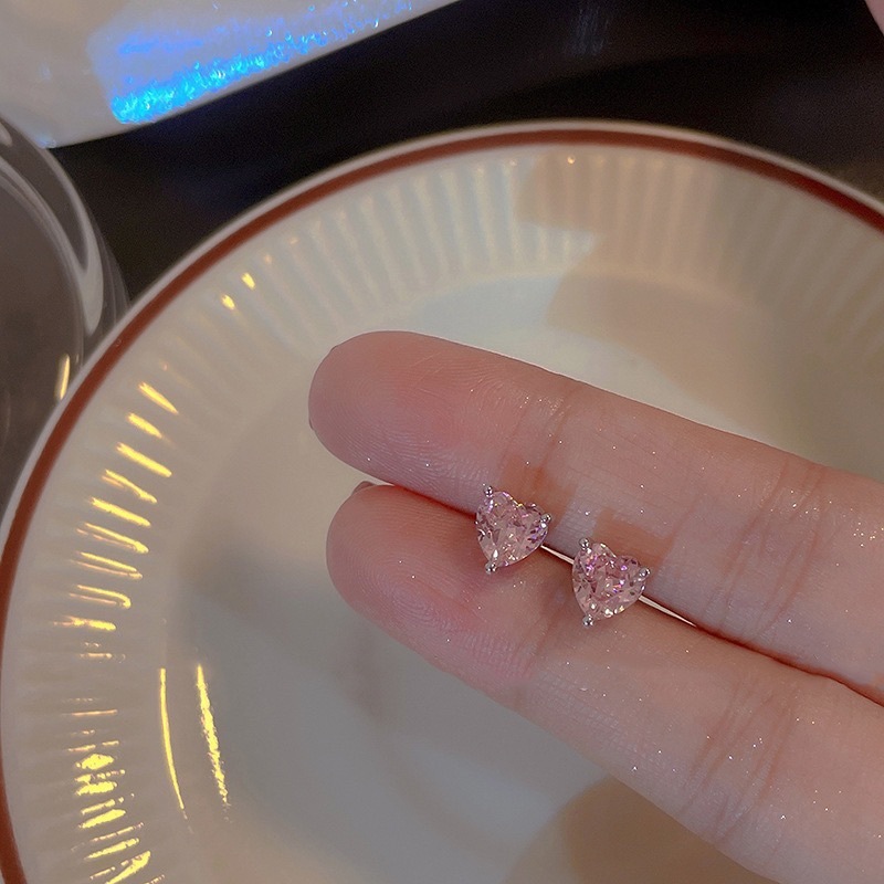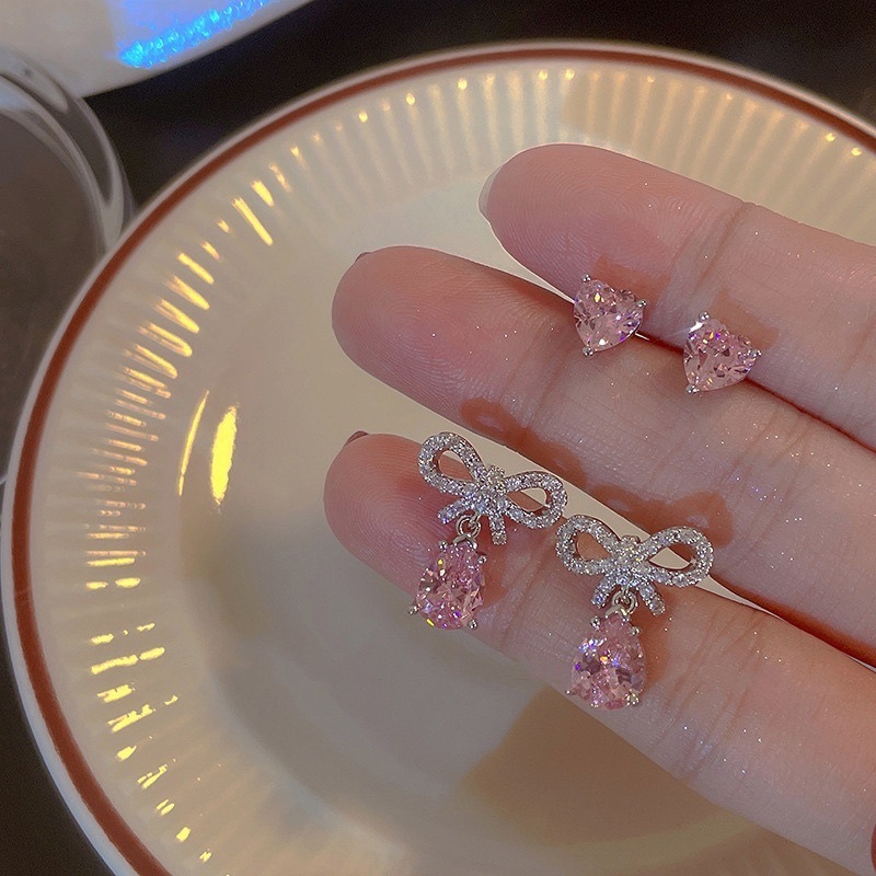 925 실버 바늘 달콤한 멋진 핑크 지르콘 나비 귀걸이 심플한 디자인 슈퍼 플래시 사랑 귀 뼈 귀걸이 여성스토어 가기