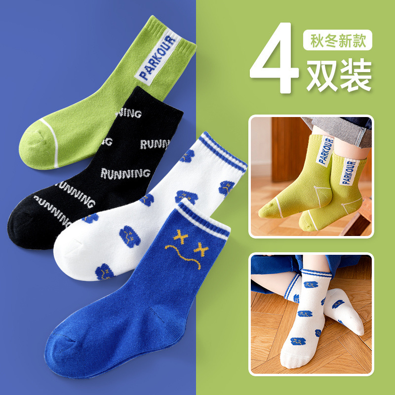 4双-儿童袜子秋冬中筒纯防臭棉运动长筒克莱因蓝春秋大童潮袜ins