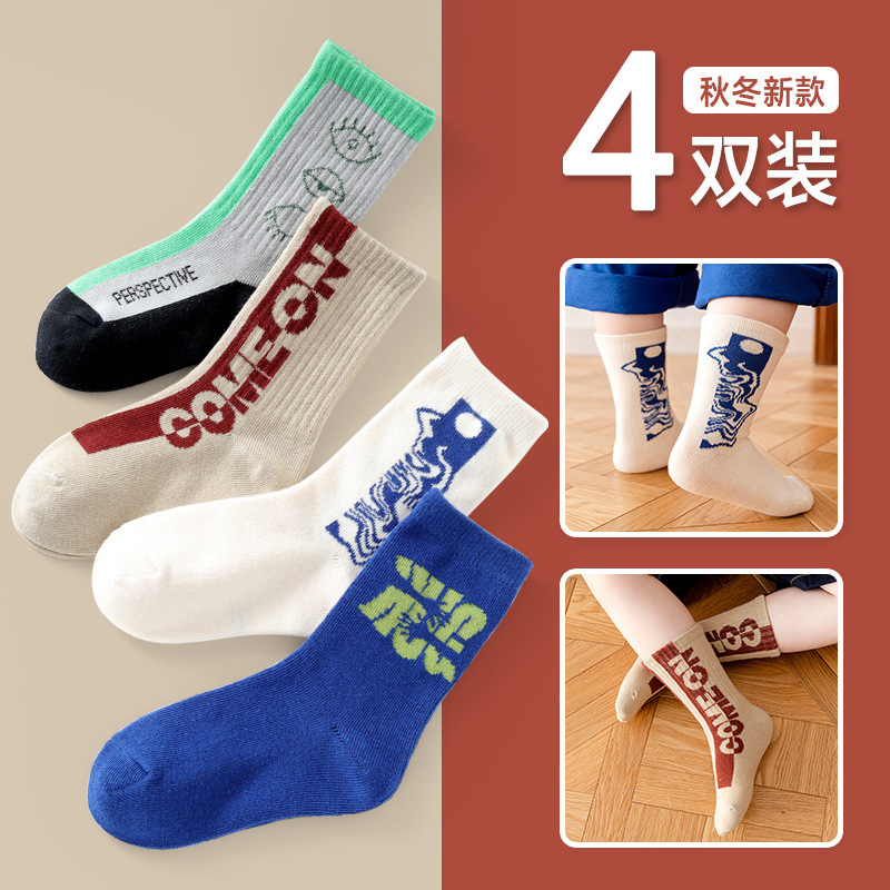 新款儿童袜子秋冬加厚袜子冬季保暖男中筒童袜女童秋季宝宝袜子秋