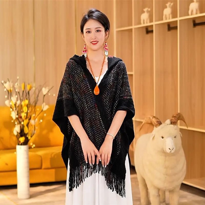 새로운 미스 그 다 양면 숄 에스닉 스타일 망토 후드 윈난 여행 술 망토 코트 여성