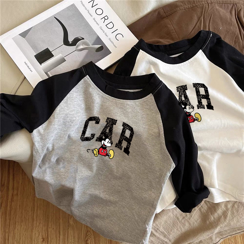 면 어린이 티셔츠 긴팔 남성 및 여성 아동복 2023 귀여운 만화 애니메이션 어린이 바닥 탑 봄과 가을스토어 가기