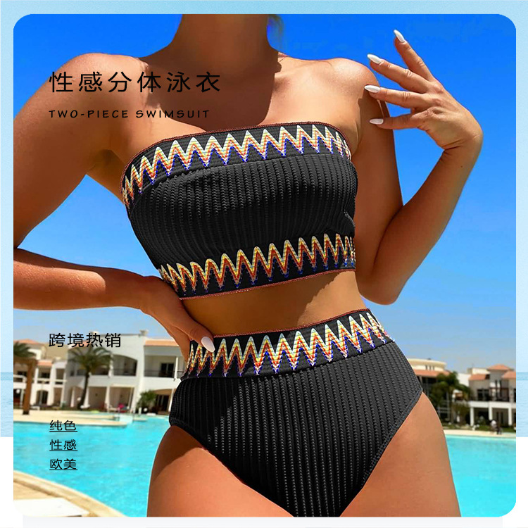 2024 신상 수영복 섹시 비키니 가슴 패드 포함 여성용 분리형 민소매 유럽 및 미국 스타일 수영복 도매