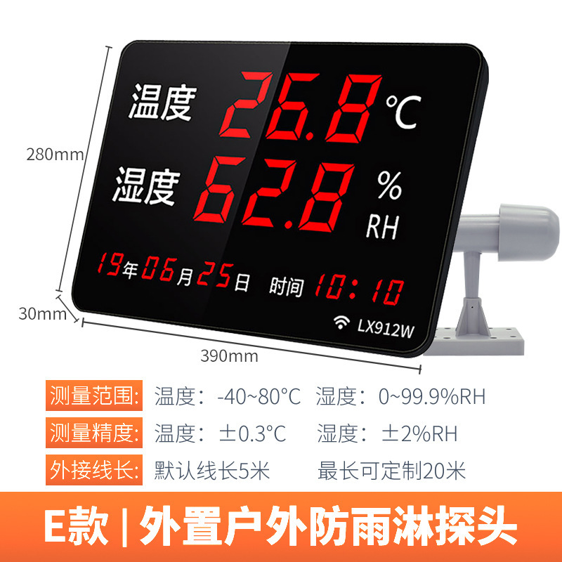 융합 측정 WiFi 디지털 디스플레이 온도 습도 미터 공장 온실 옥내 원격 감지 경보 온도계 고정밀도