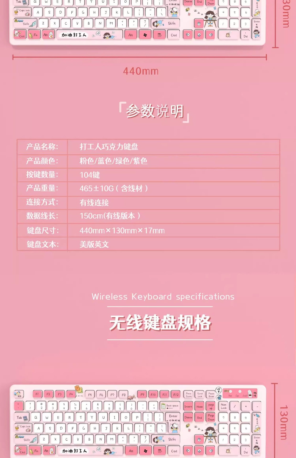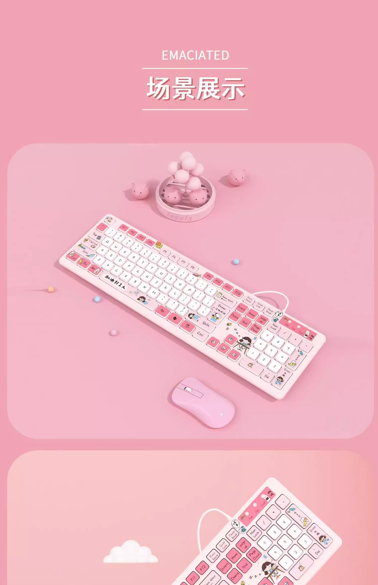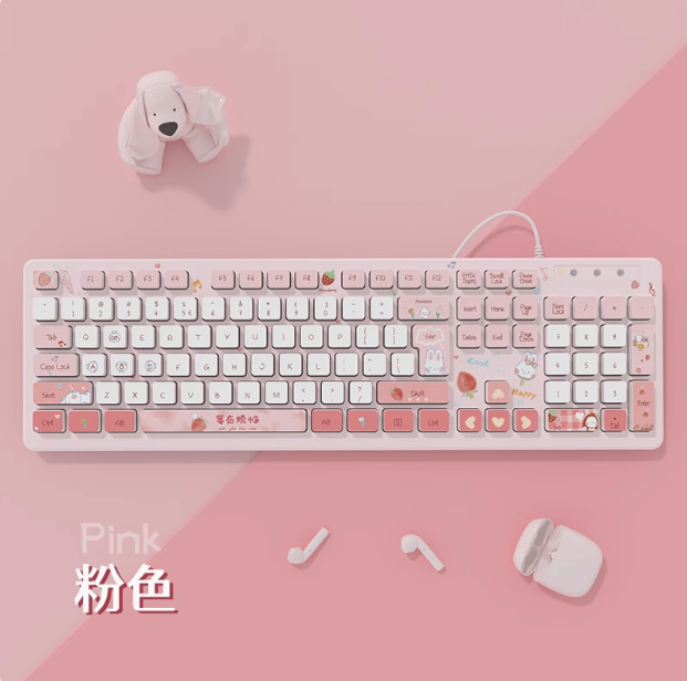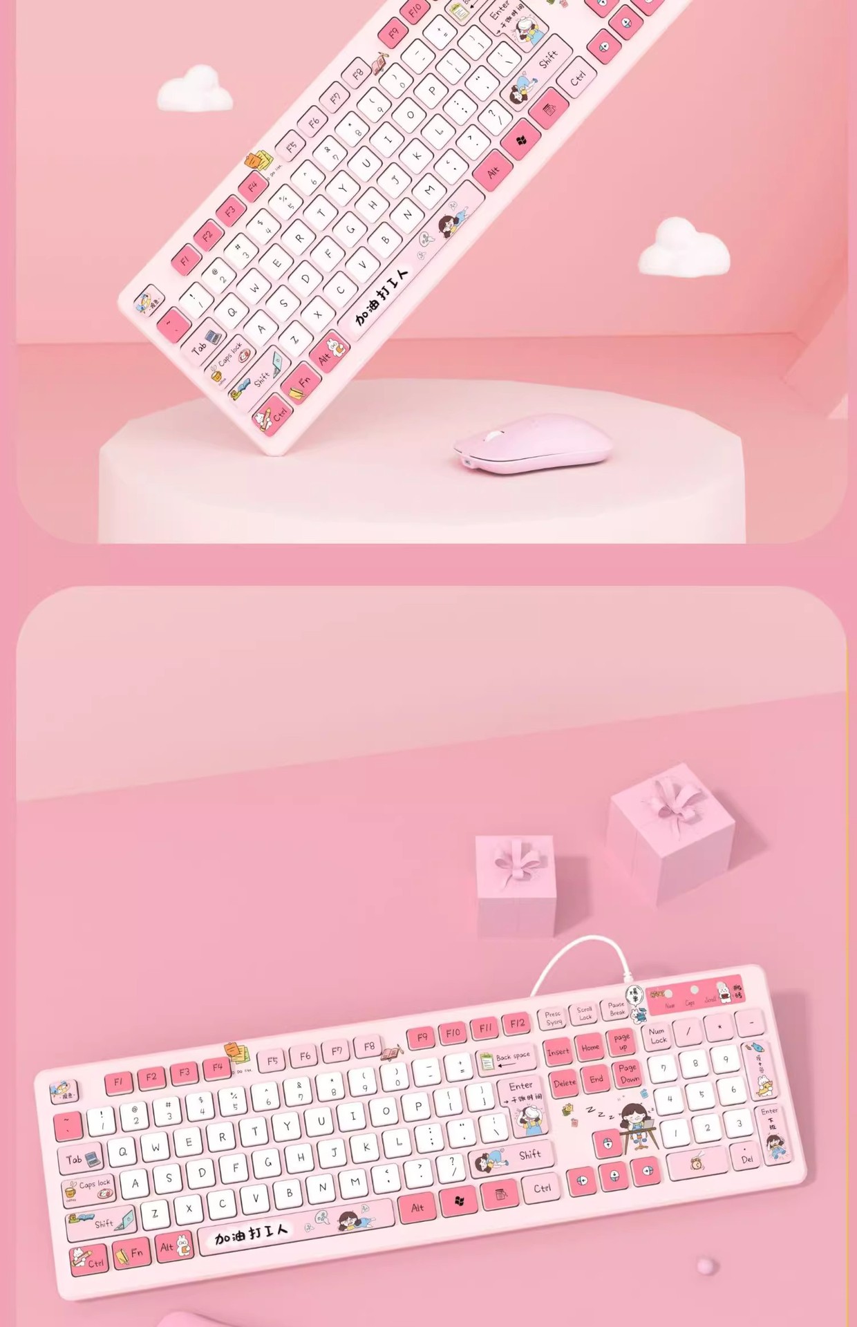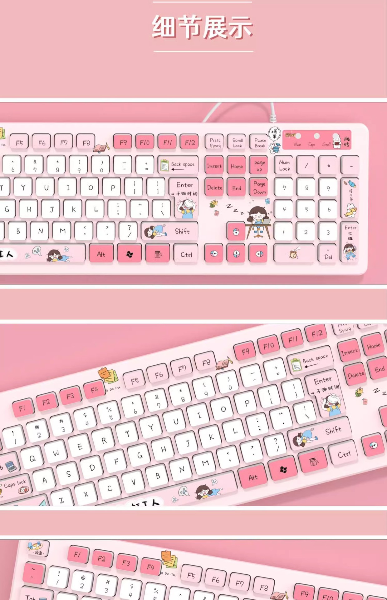 음소거 키보드 소녀 사무실 초콜릿 하이 컬러 값 귀여운 노트북 유선 키보드 무선 타이핑 사용자 정의스토어 가기