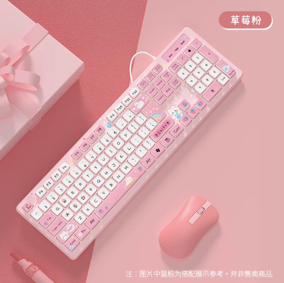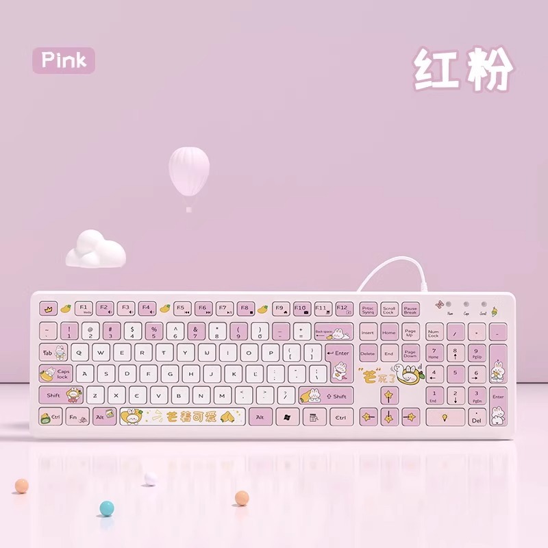• 망주오 귀여운-레드 핑크 [유선] [싱글 키보드]