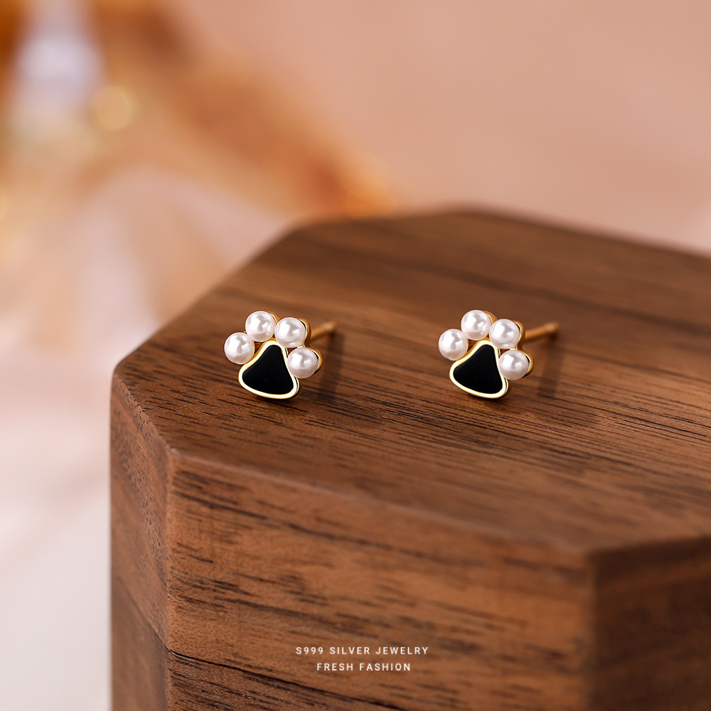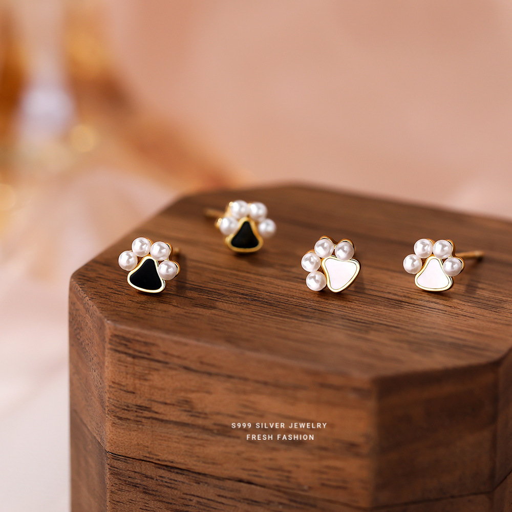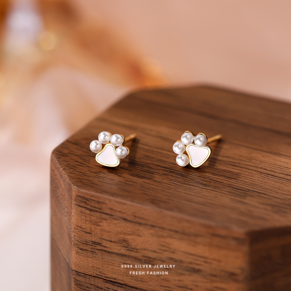 S925 실버 바늘 새끼 고양이 발톱 이어 스터드 여성용 천연 담수 진주 귀걸이 소녀의 둥근 얼굴 2023 새로운 패션 귀걸이스토어 가기