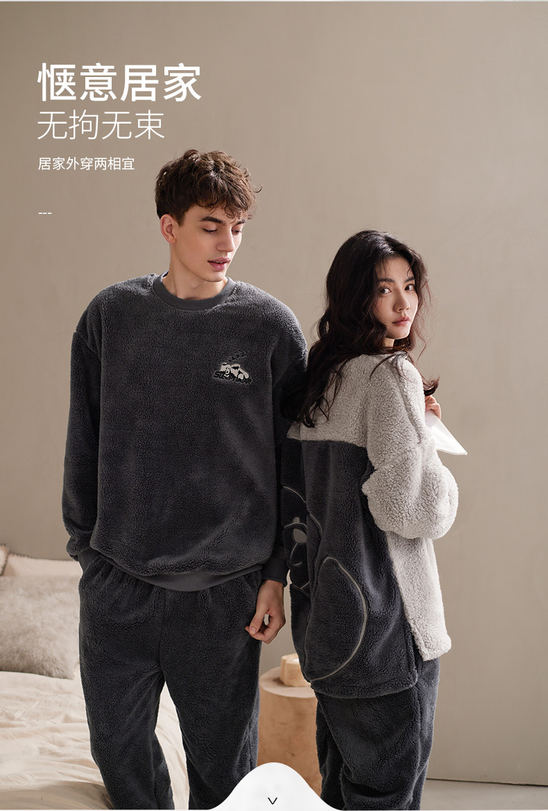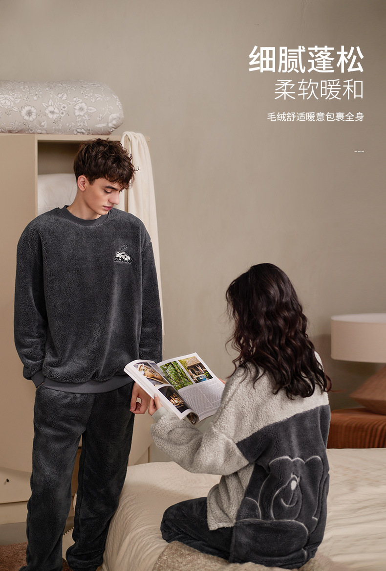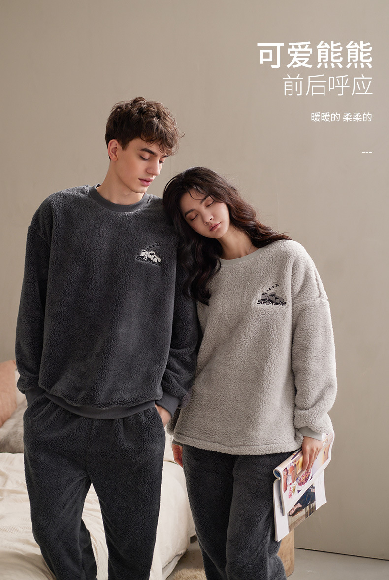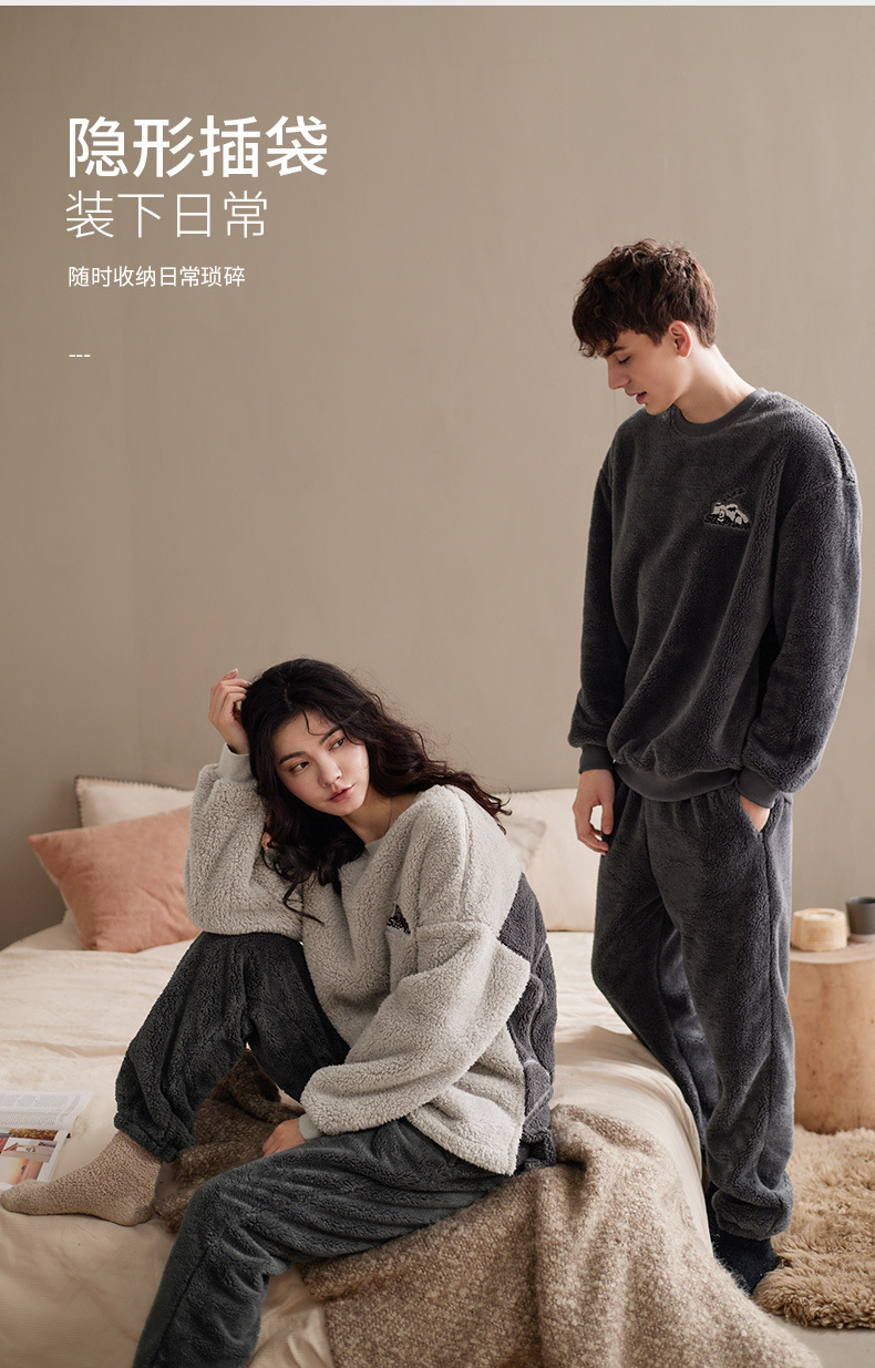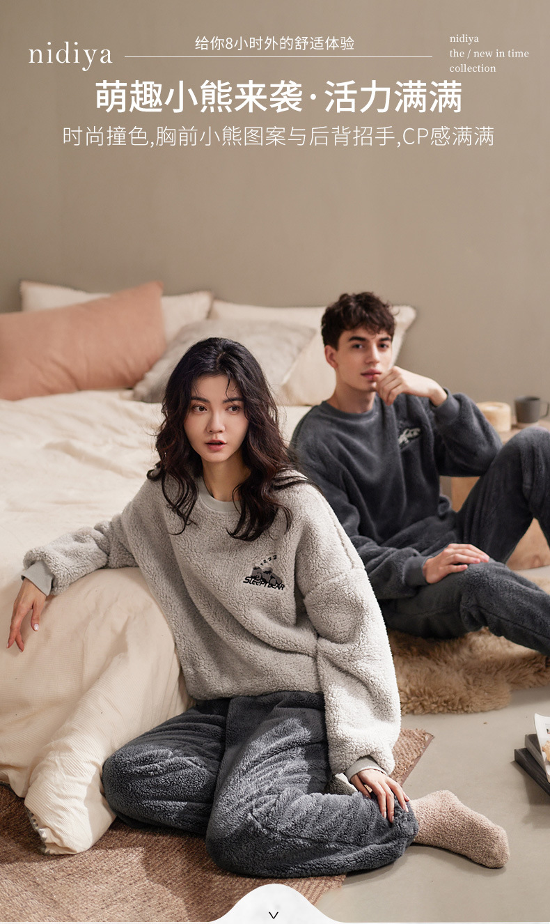 Nidia 커플 잠옷 여자의 겨울 산호 양털 두꺼운 따뜻한 크루넥 풀오버 남자의 캐주얼 가정 옷 세트스토어 가기