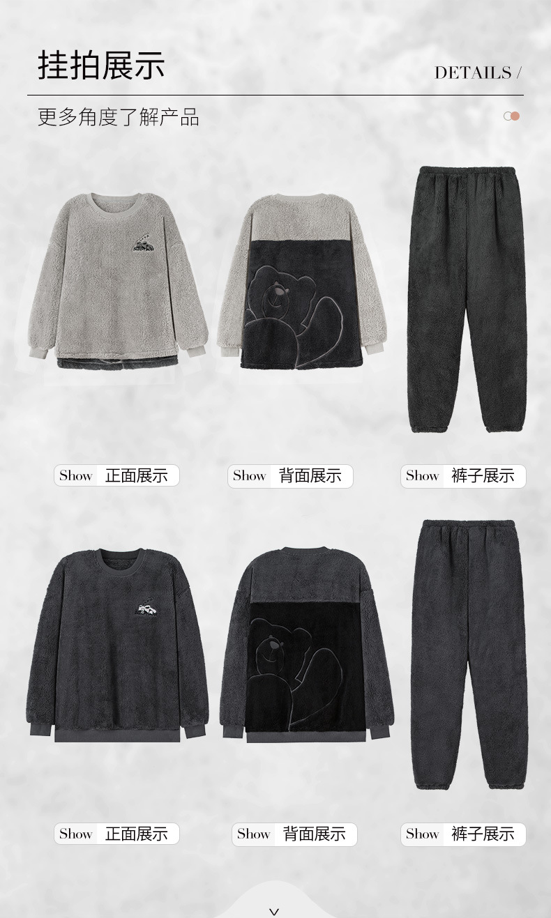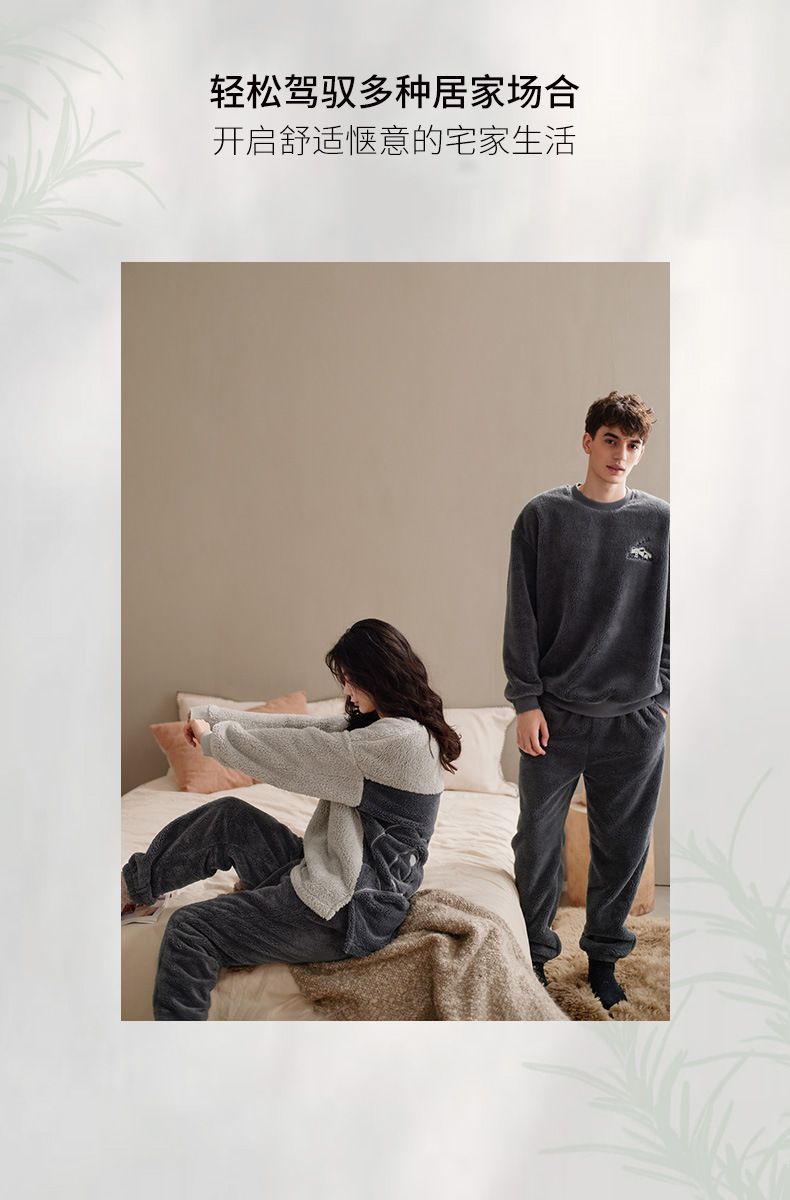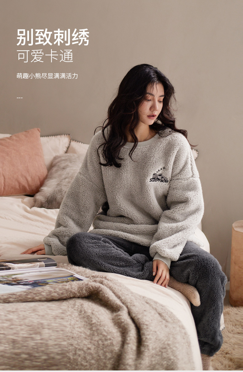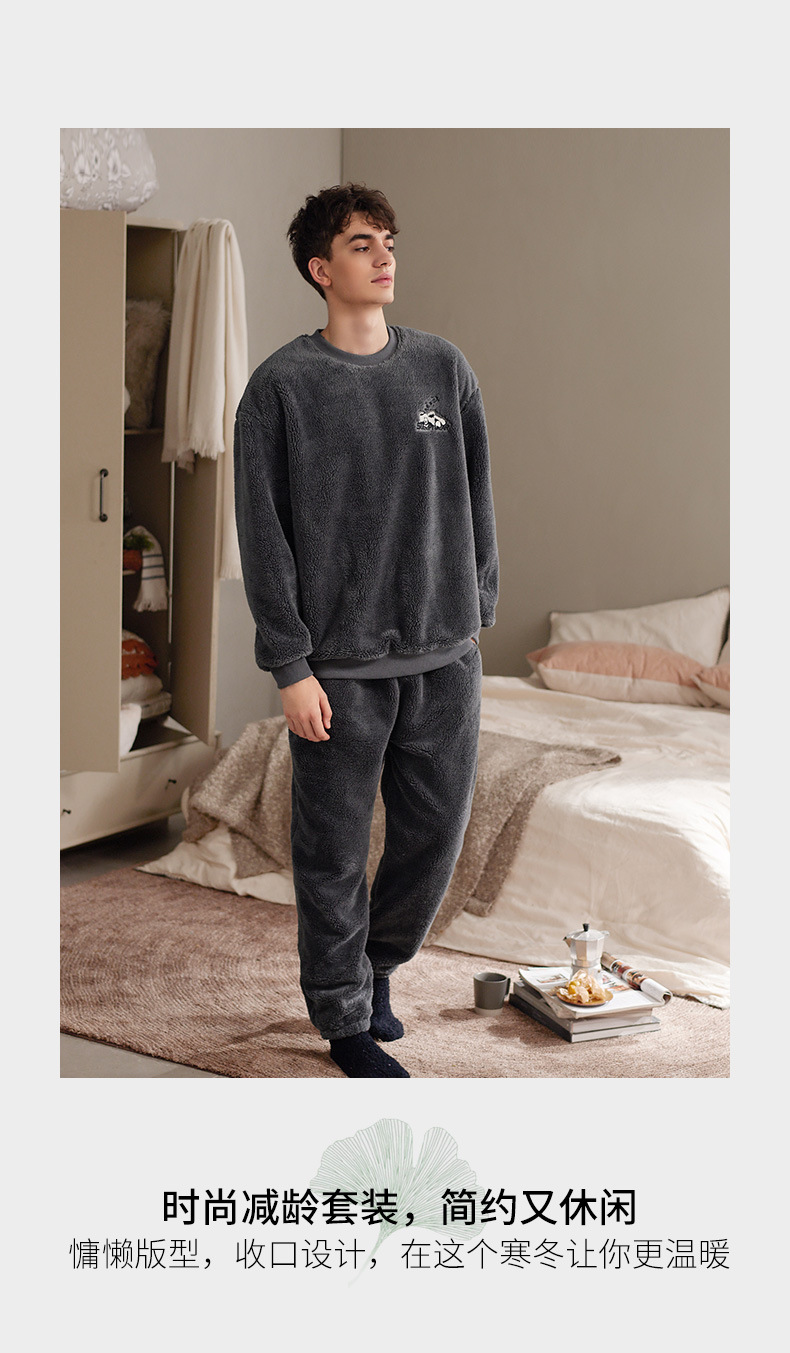 Nidia 커플 잠옷 여자의 겨울 산호 양털 두꺼운 따뜻한 크루넥 풀오버 남자의 캐주얼 가정 옷 세트스토어 가기
