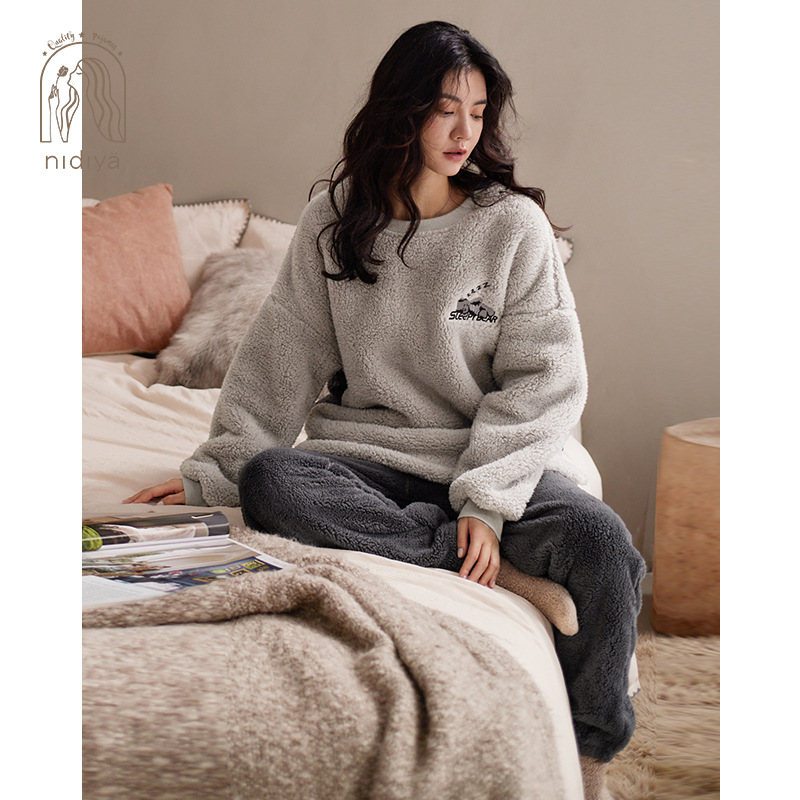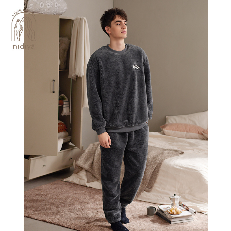 Nidia 커플 잠옷 여자의 겨울 산호 양털 두꺼운 따뜻한 크루넥 풀오버 남자의 캐주얼 가정 옷 세트
