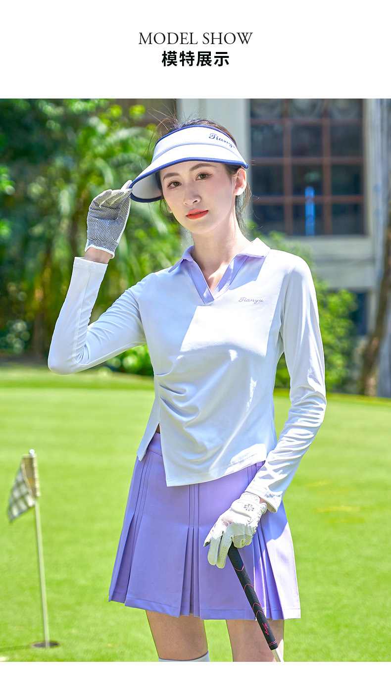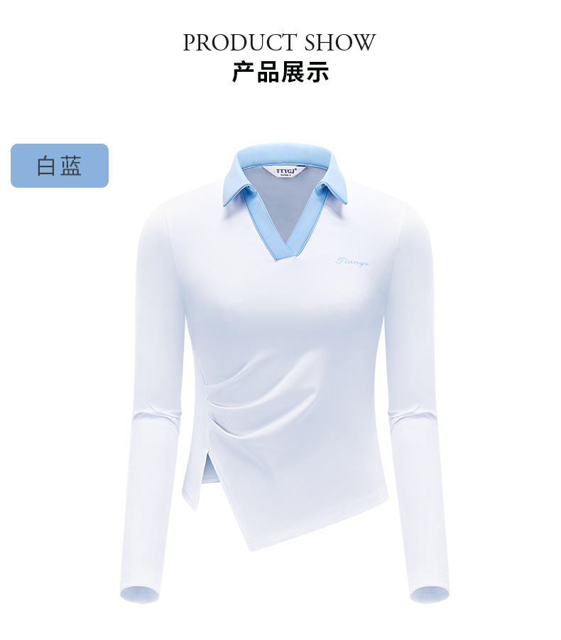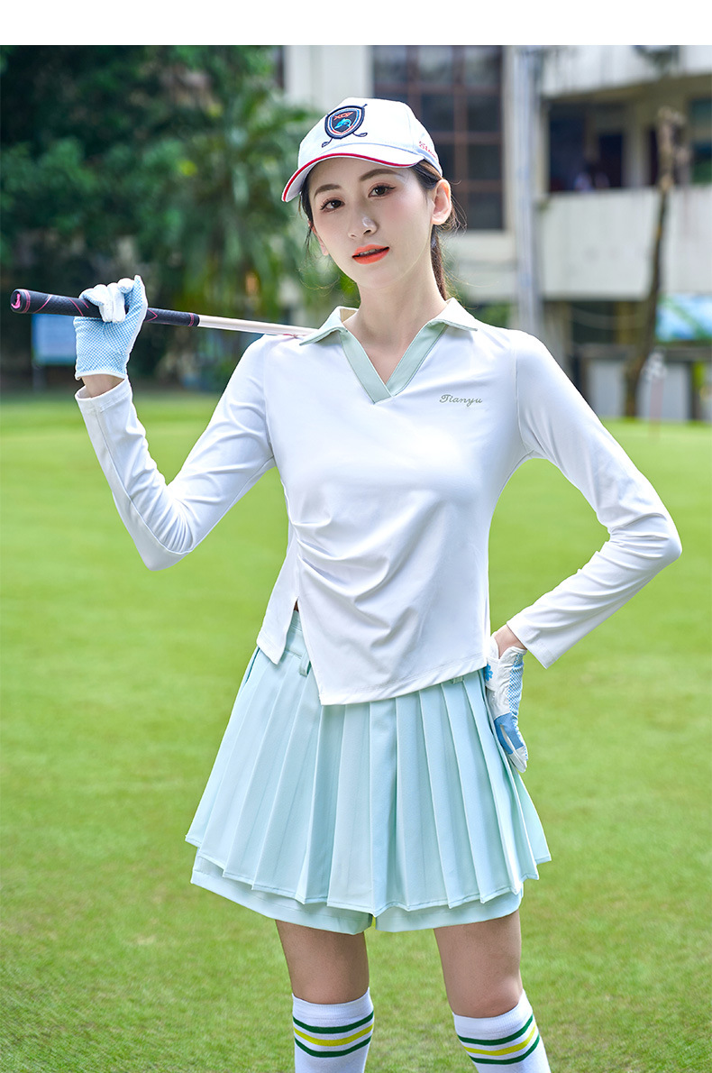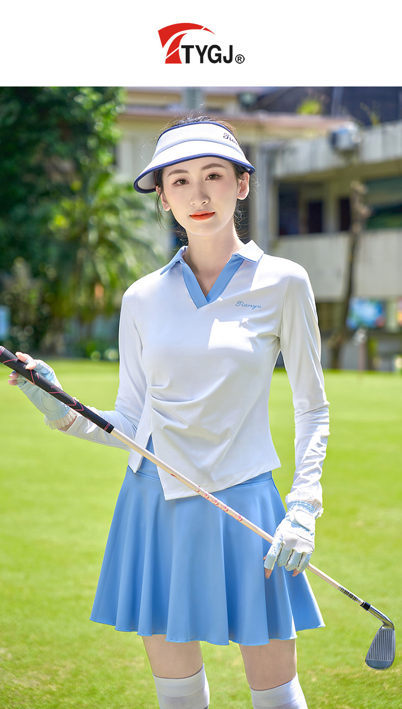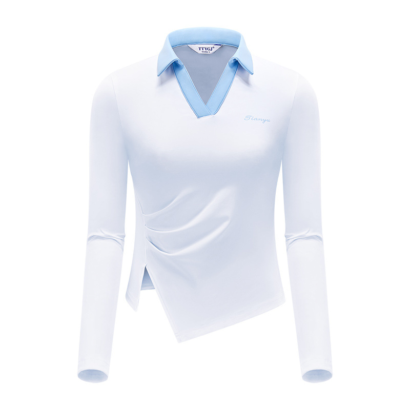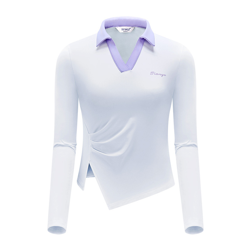 TTYGJ 골프 여성 의류 봄과 가을 새로운 스트레치 긴 소매 티셔츠 여성용 탑 V-넥 슬림 룩 스포츠 의류스토어 가기