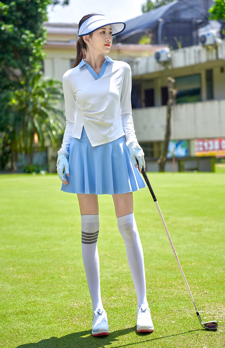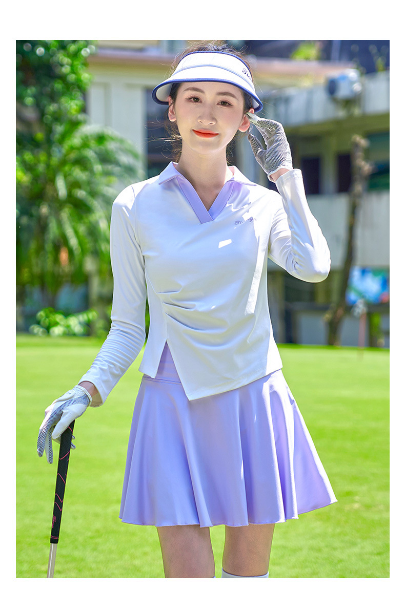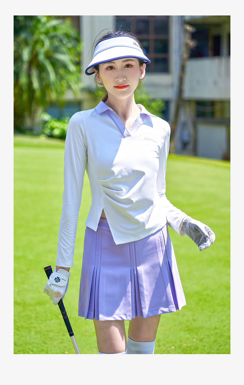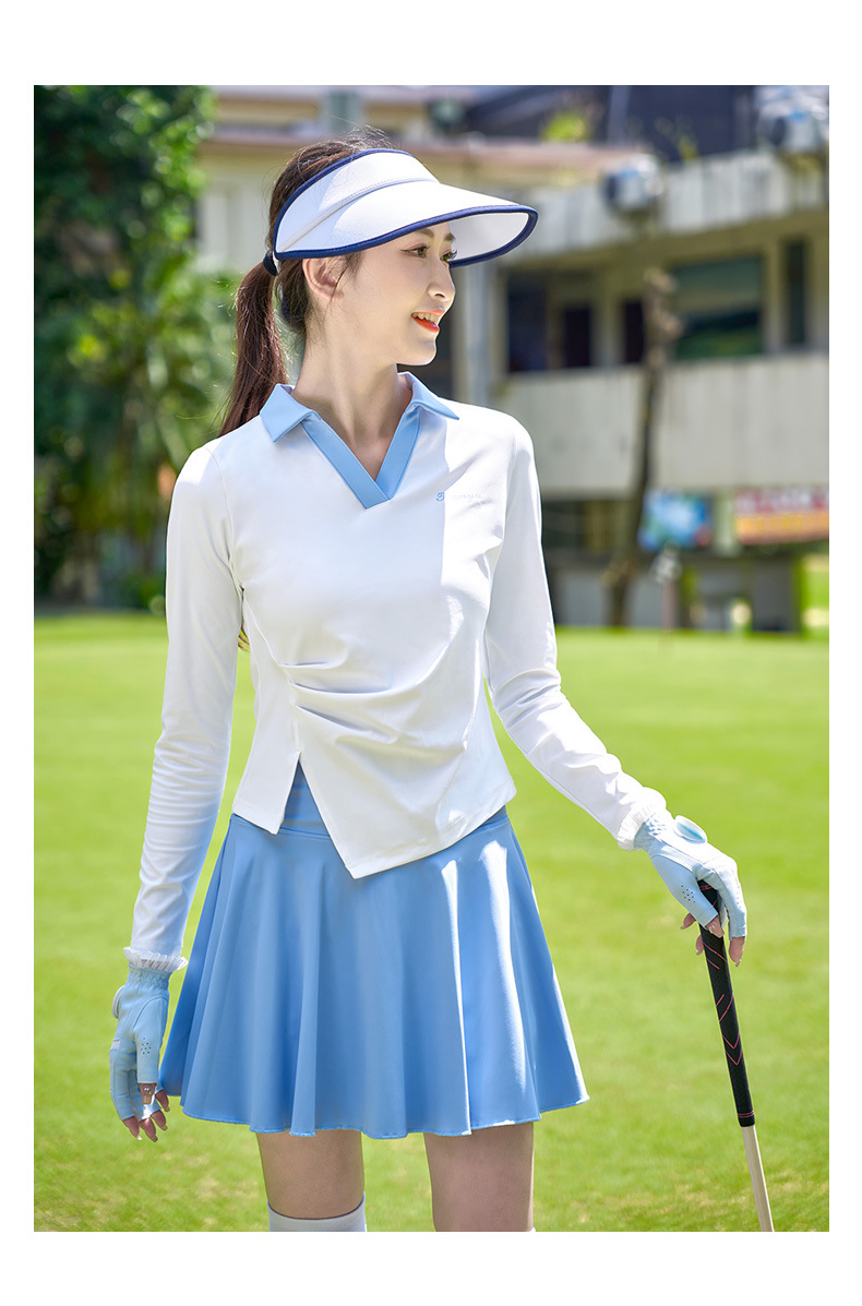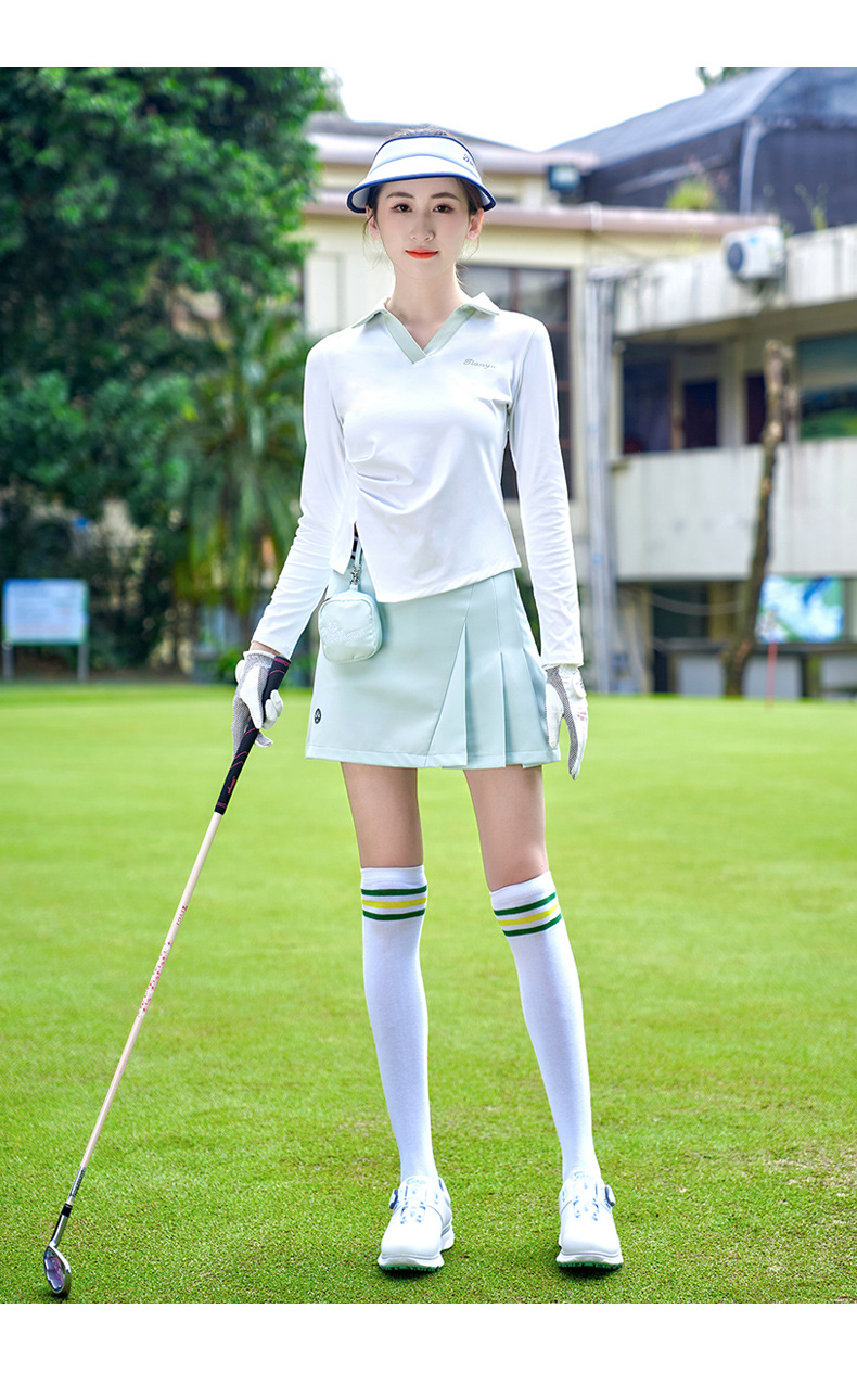 TTYGJ 골프 여성 의류 봄과 가을 새로운 스트레치 긴 소매 티셔츠 여성용 탑 V-넥 슬림 룩 스포츠 의류스토어 가기