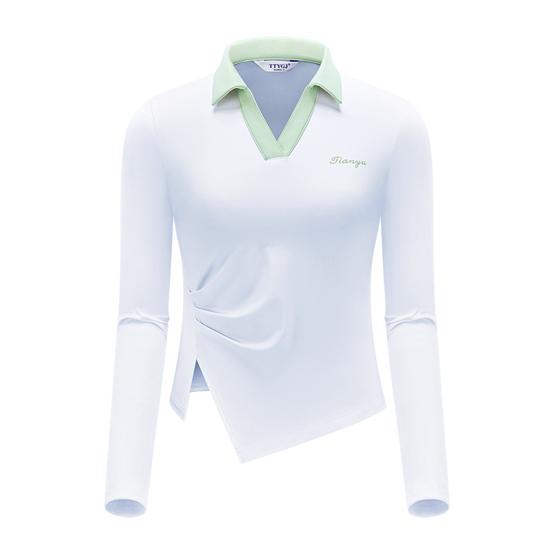TTYGJ 골프 여성 의류 봄과 가을 새로운 스트레치 긴 소매 티셔츠 여성용 탑 V-넥 슬림 룩 스포츠 의류