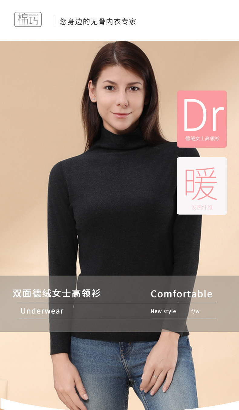 양면 벨벳 열 속옷 기모 두꺼운 난방 터틀넥 가을과 겨울 여성의 기본 셔츠 가을 옷 정균 탑