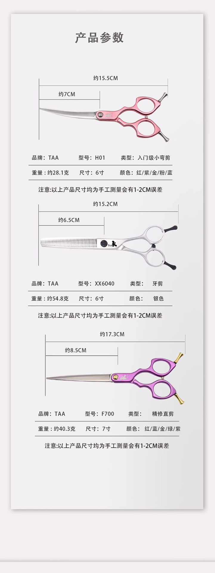 TAA 가위 그것은 애완 동물 아름다움 머리 7.5 개 고양이 이발 6.5 인치 치아 가위 스트레이트 컷 곡선 가위스토어 가기