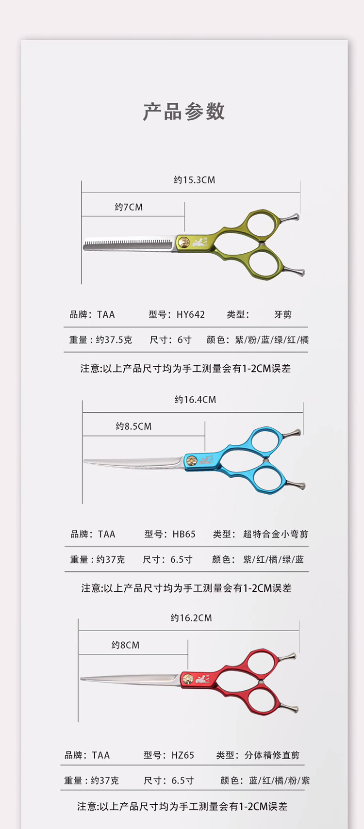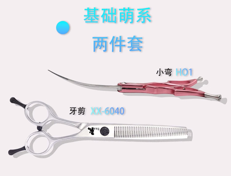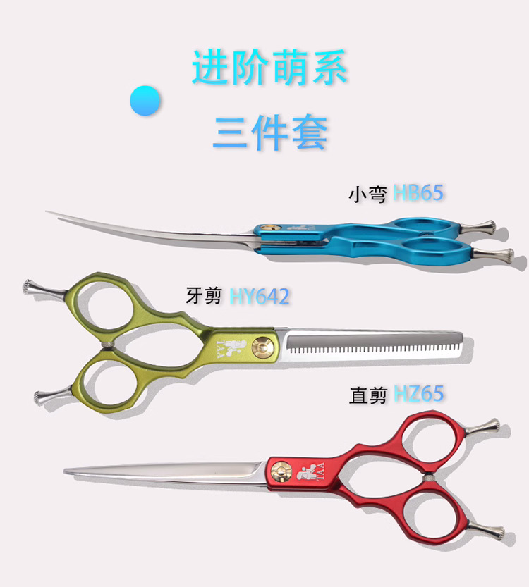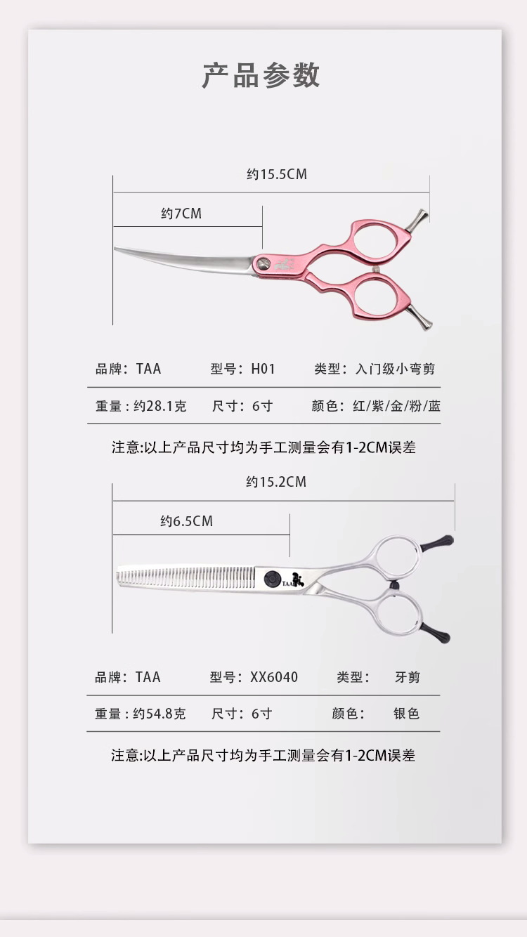 TAA 가위 그것은 애완 동물 아름다움 머리 7.5 개 고양이 이발 6.5 인치 치아 가위 스트레이트 컷 곡선 가위