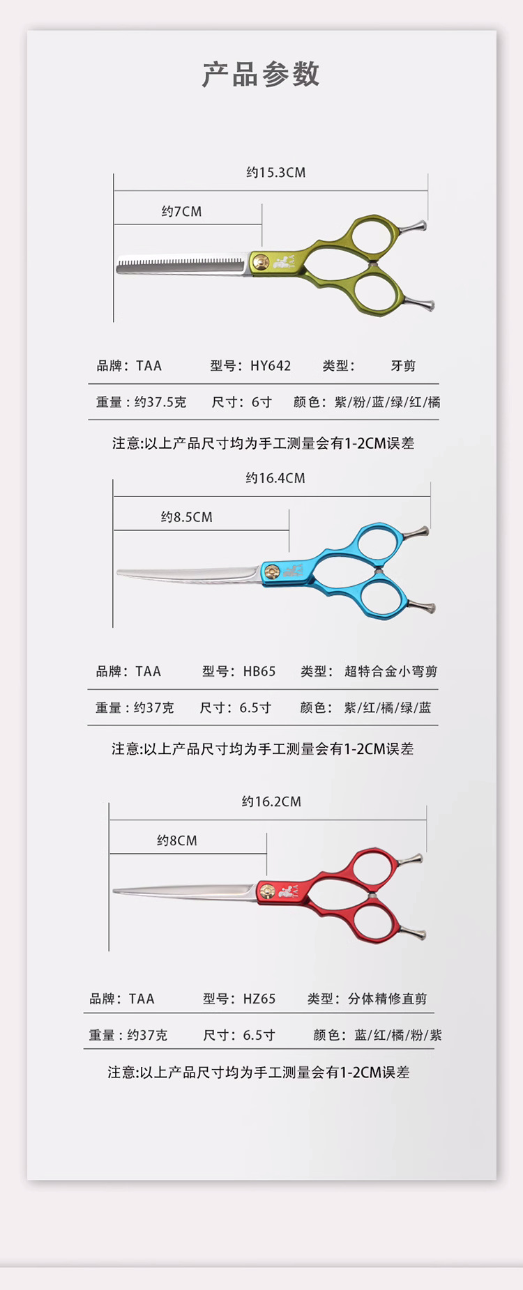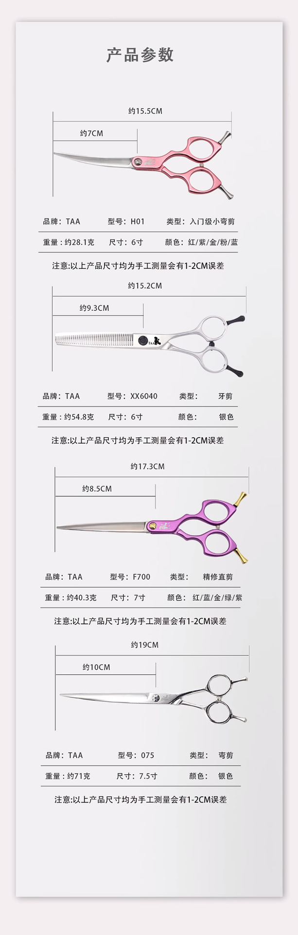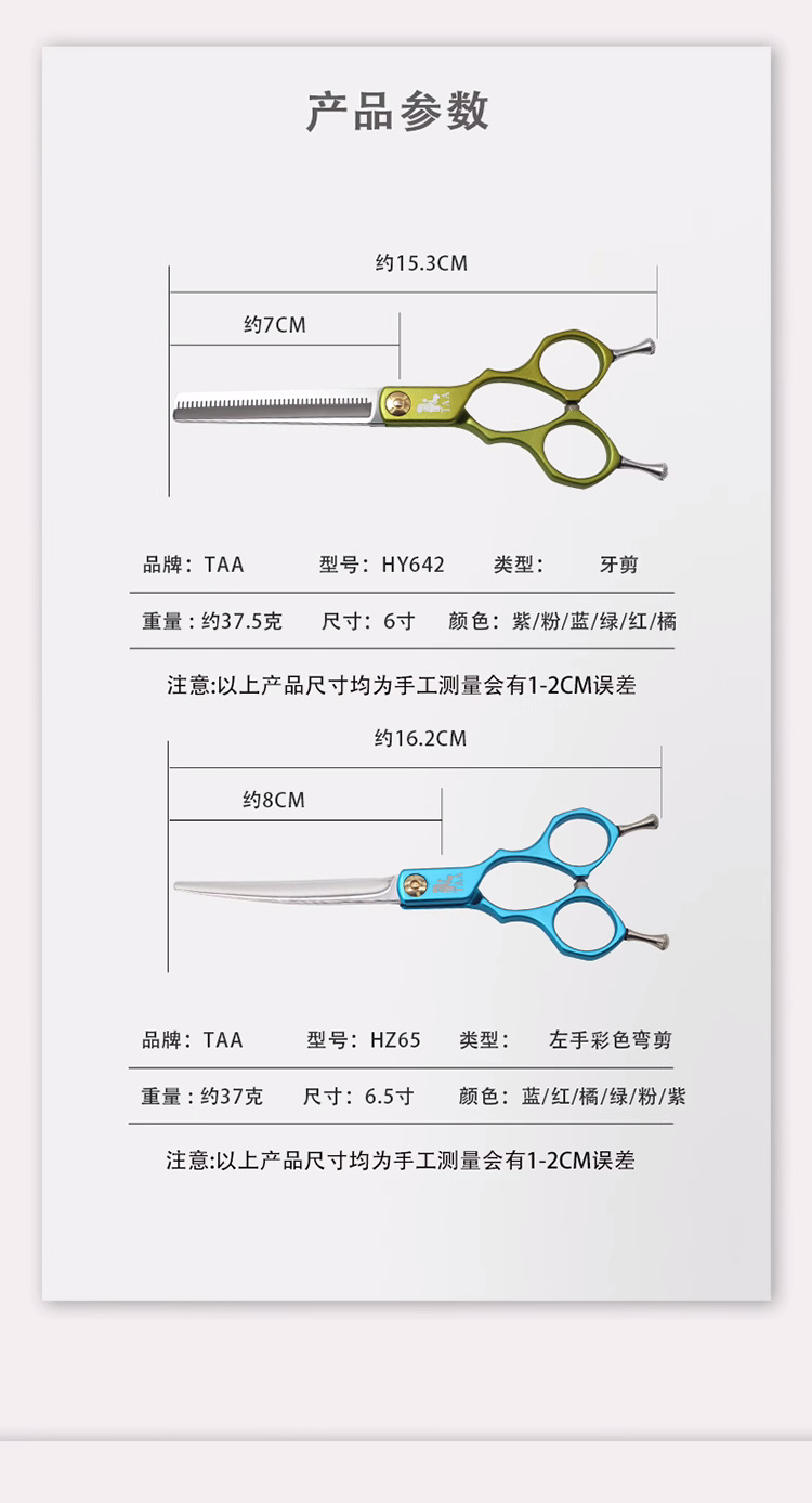 TAA 가위 그것은 애완 동물 아름다움 머리 7.5 개 고양이 이발 6.5 인치 치아 가위 스트레이트 컷 곡선 가위