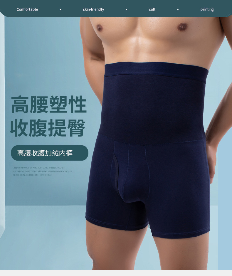 높은 허리 배꼽 착색 남자의 속옷 허리 기모 속옷 허리 보호 배꼽 보호 바지 머리 길이 플러스 사이즈 면 복서스토어 가기