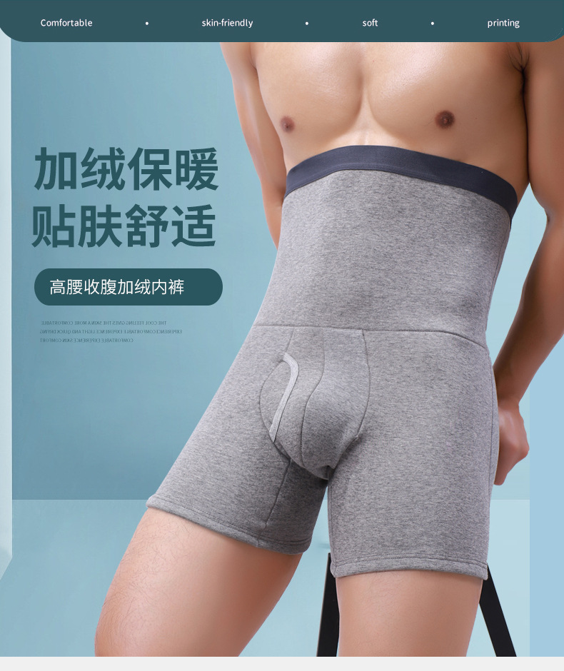 높은 허리 배꼽 착색 남자의 속옷 허리 기모 속옷 허리 보호 배꼽 보호 바지 머리 길이 플러스 사이즈 면 복서