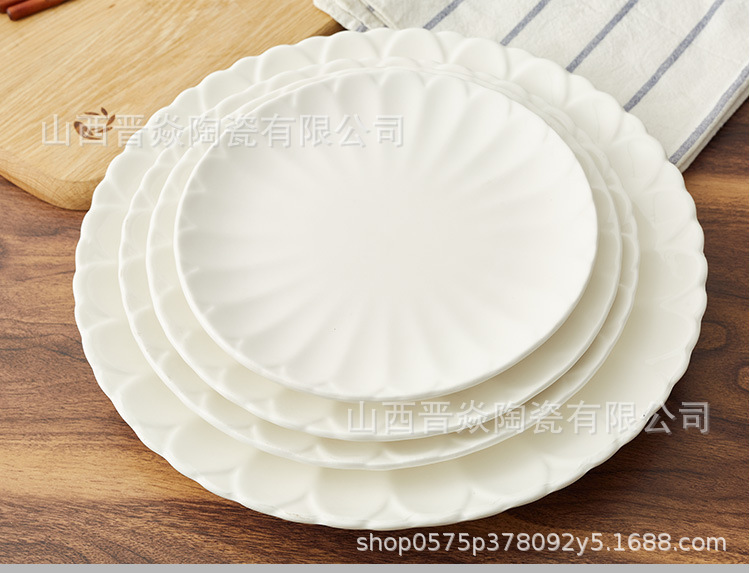 도매 세라믹 식기 얕은 접시 크리 에이 티브 순수한 흰색 두꺼운 국화 접시 스테이크 서양 음식 접시 세라믹 접시스토어 가기